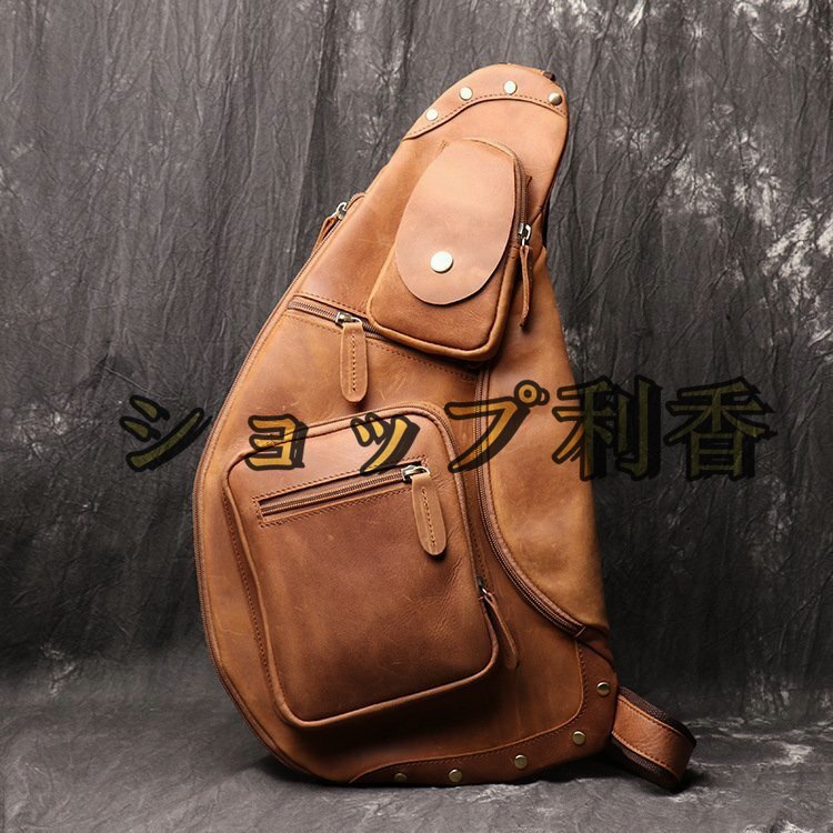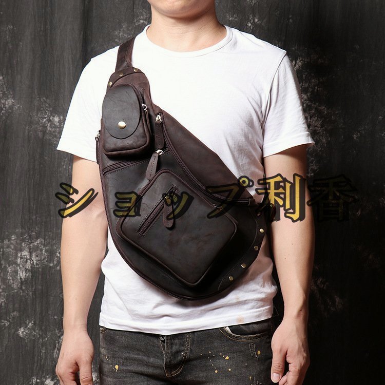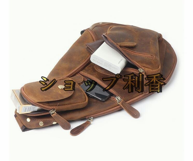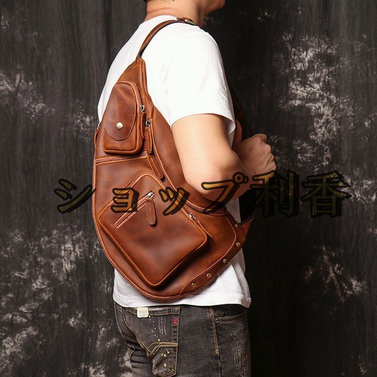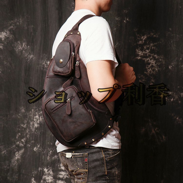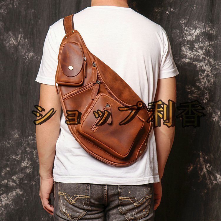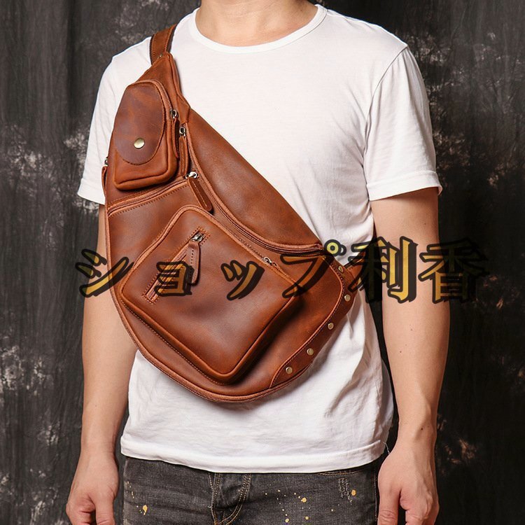 新品登場 左右肩掛け可能 ボディバッグ メンズバッグ 大容量 防水 斜めがけ ワンショルダーバッグ かばん  ブラウン