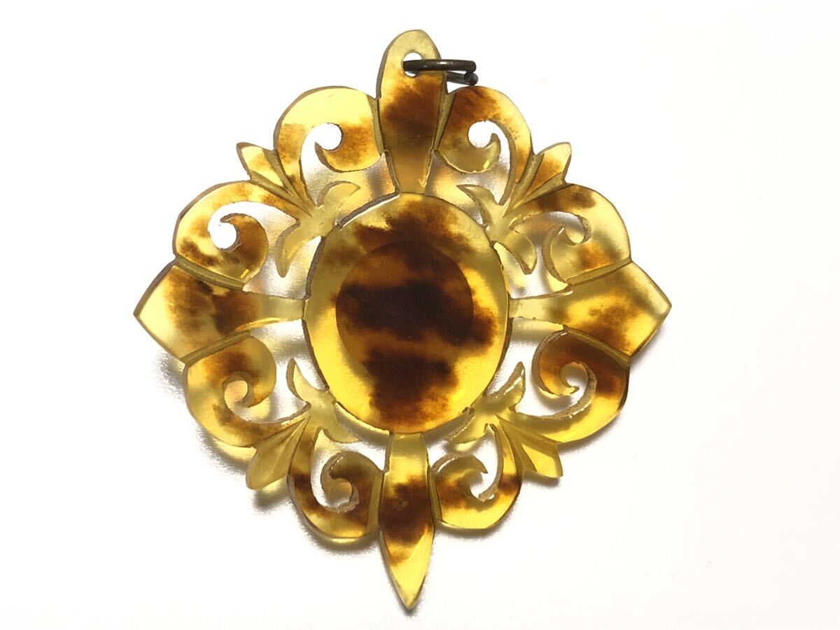 アンティークの鼈甲張、アクリルカメオを使用した、デザインペンダントトップです。鼈甲部分に虫食いはありません。