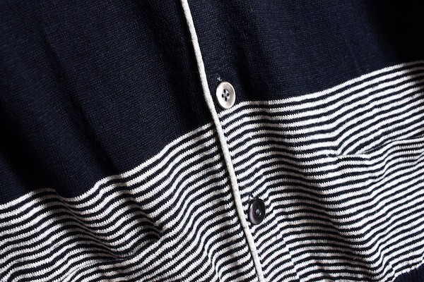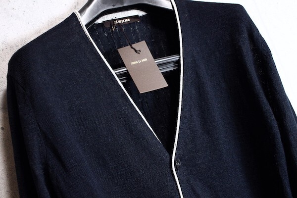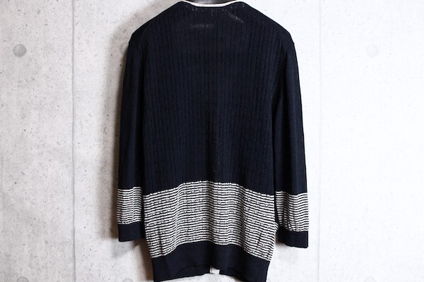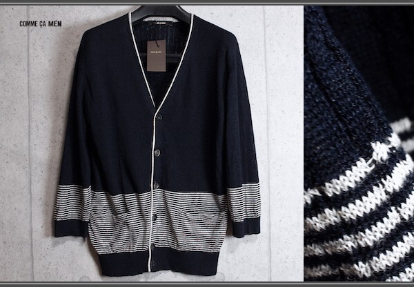 コムサ系のメインブランド、コムサメン(COMME CA MEN)の七分丈 リネン100% ボーダー カーディガン。