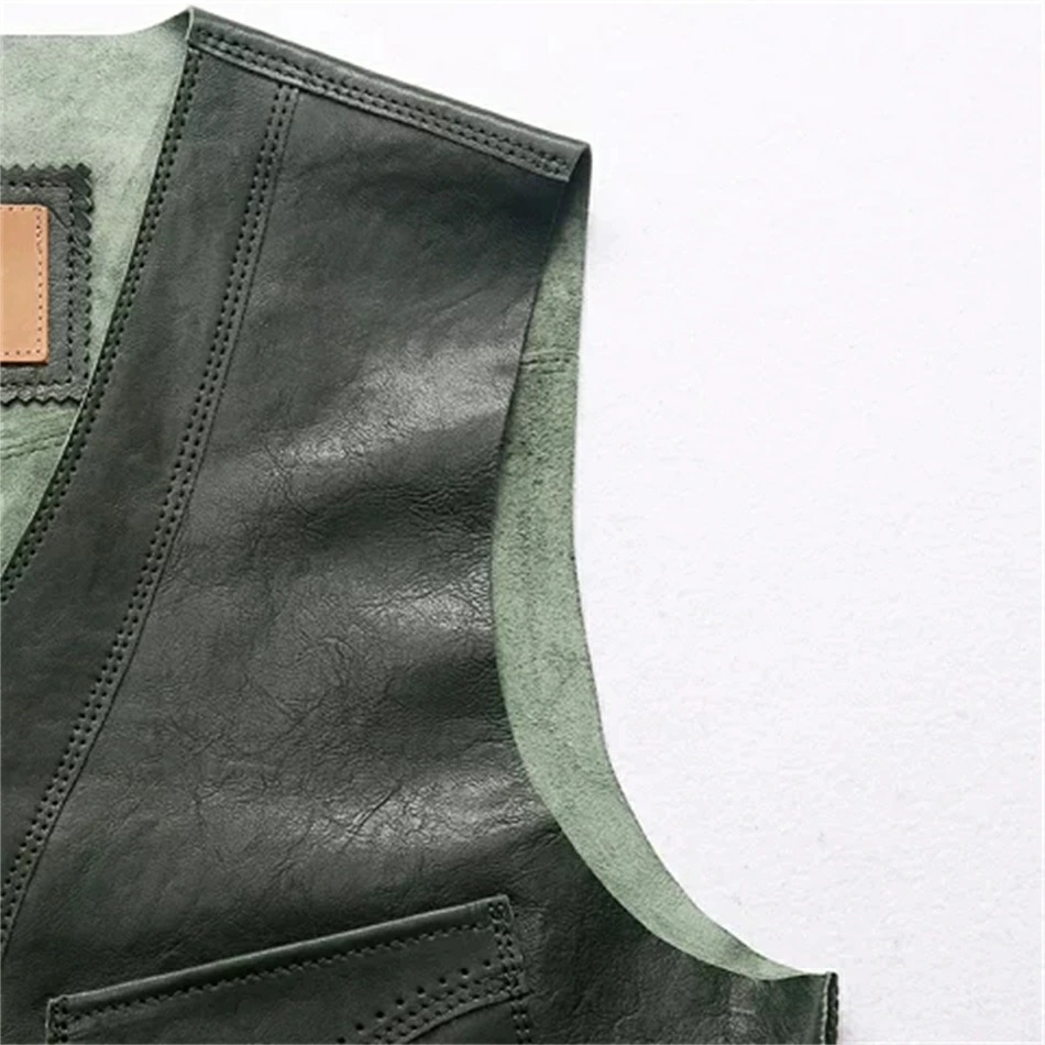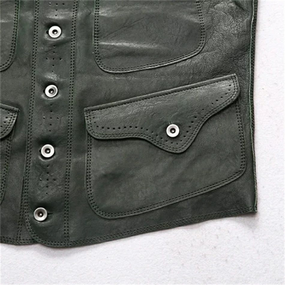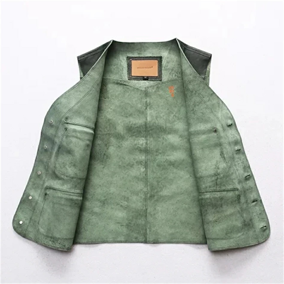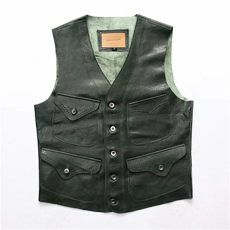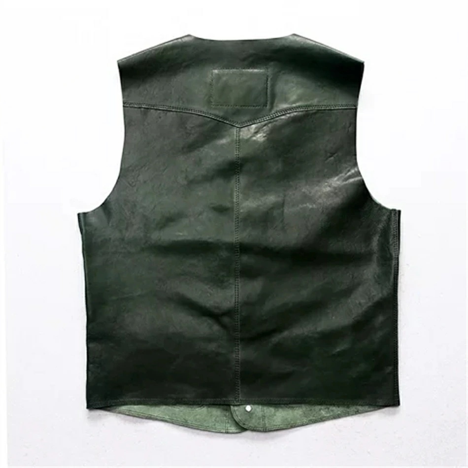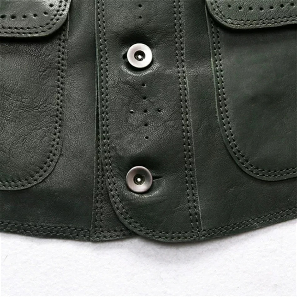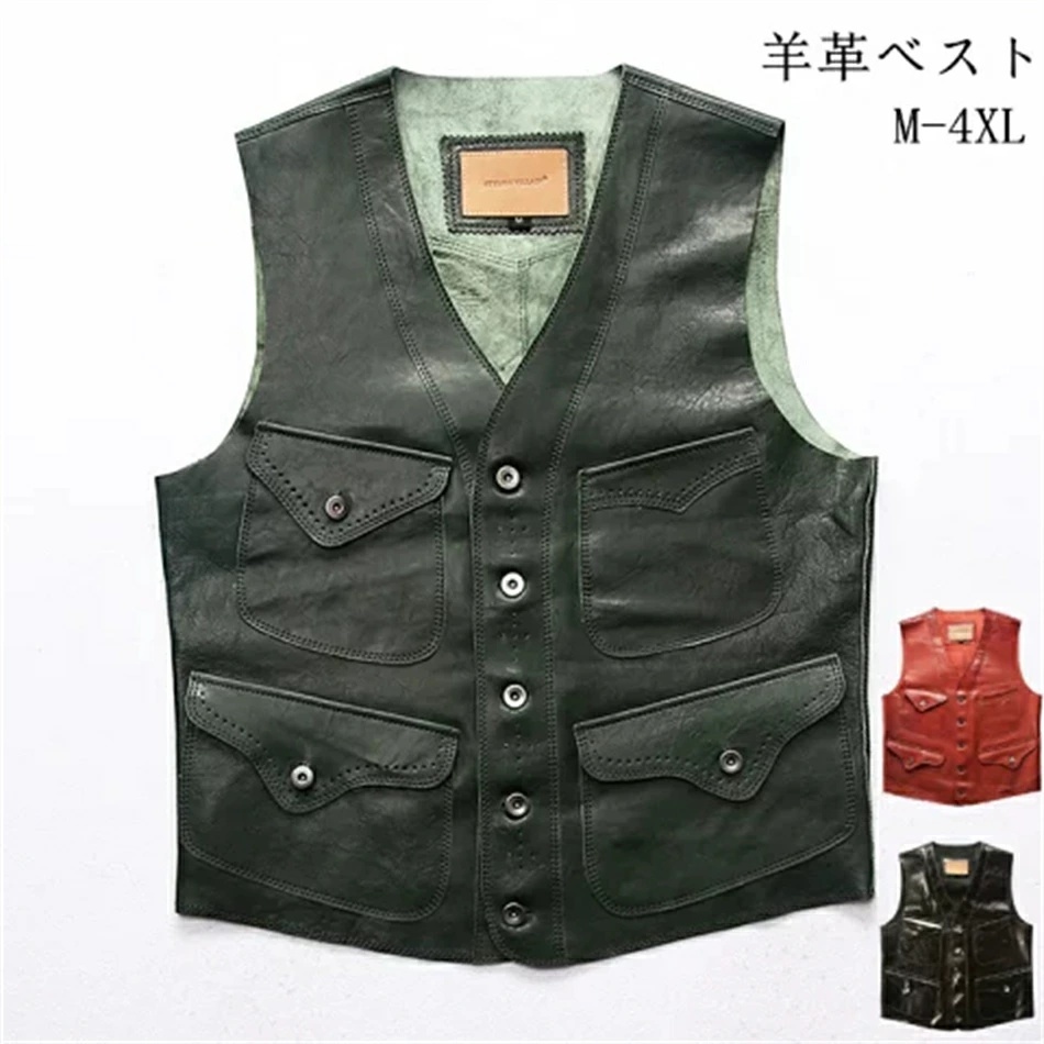 ★新品★メンズ LWMZ19-XLサイズ グリーン レザーベスト バイク革ベスト パンク風 ライダースベスト 羊革バイクベスト バイクウェア 本革