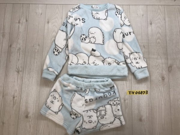 すみっコぐらし キッズ フリース ルームウェア 長袖・ハーフパンツ 上下セットアップ 130 薄い水色 です。