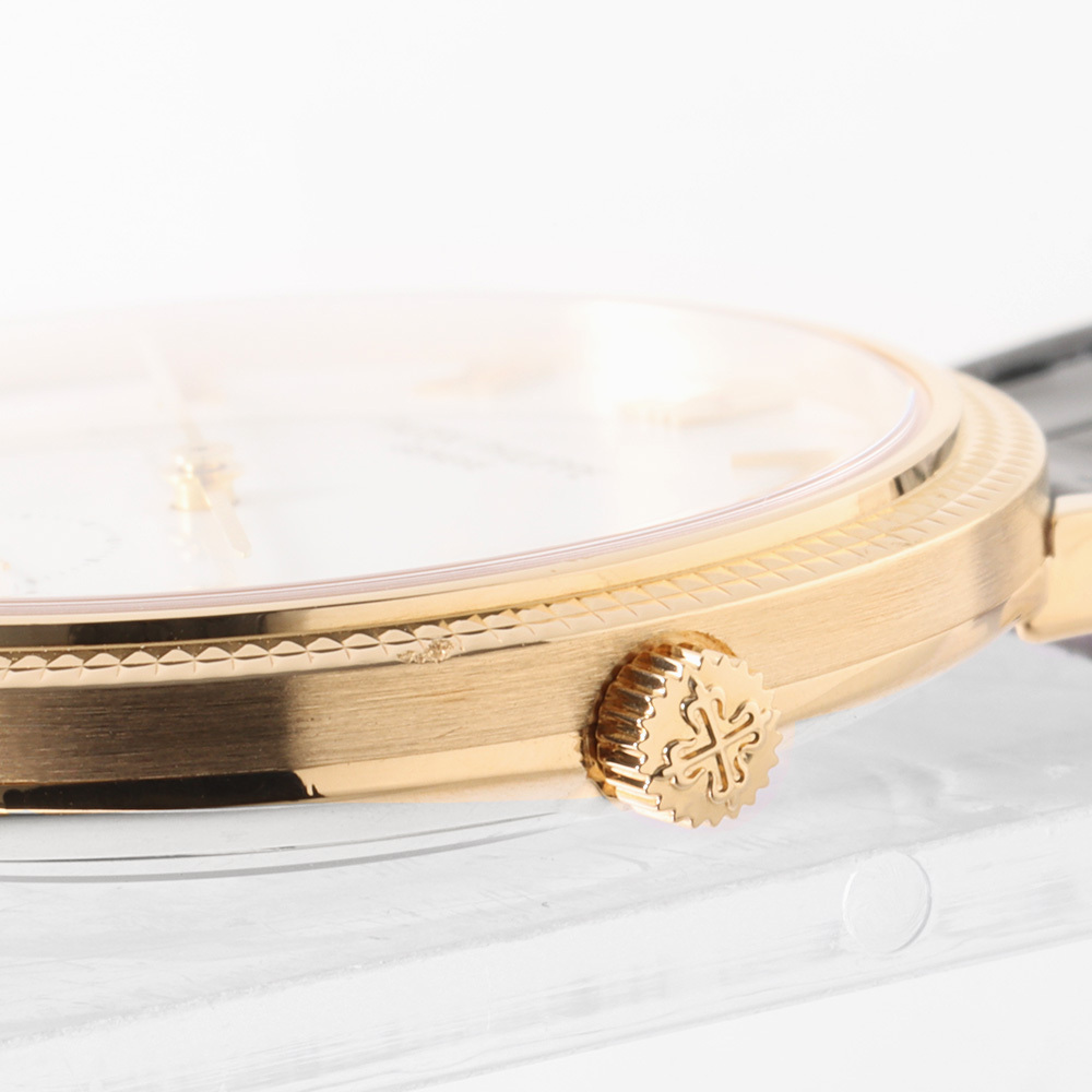 モデル情報 | 1998年に日本150本限定で販売されたモデルです。当時はまだ設定のなかったバックスケルトンとローマンアップライトインデックスが特徴になります。ベゼルのホブネイルパターンの繊細さはパテックフィリップならではのタイムピースです。ムーブメントはを搭載しています。 |