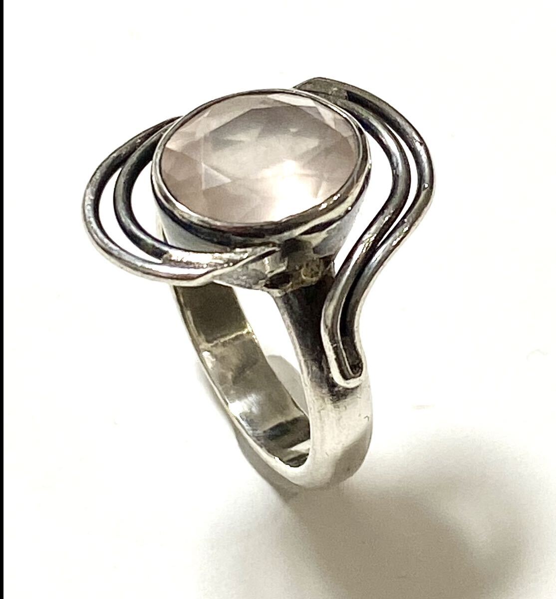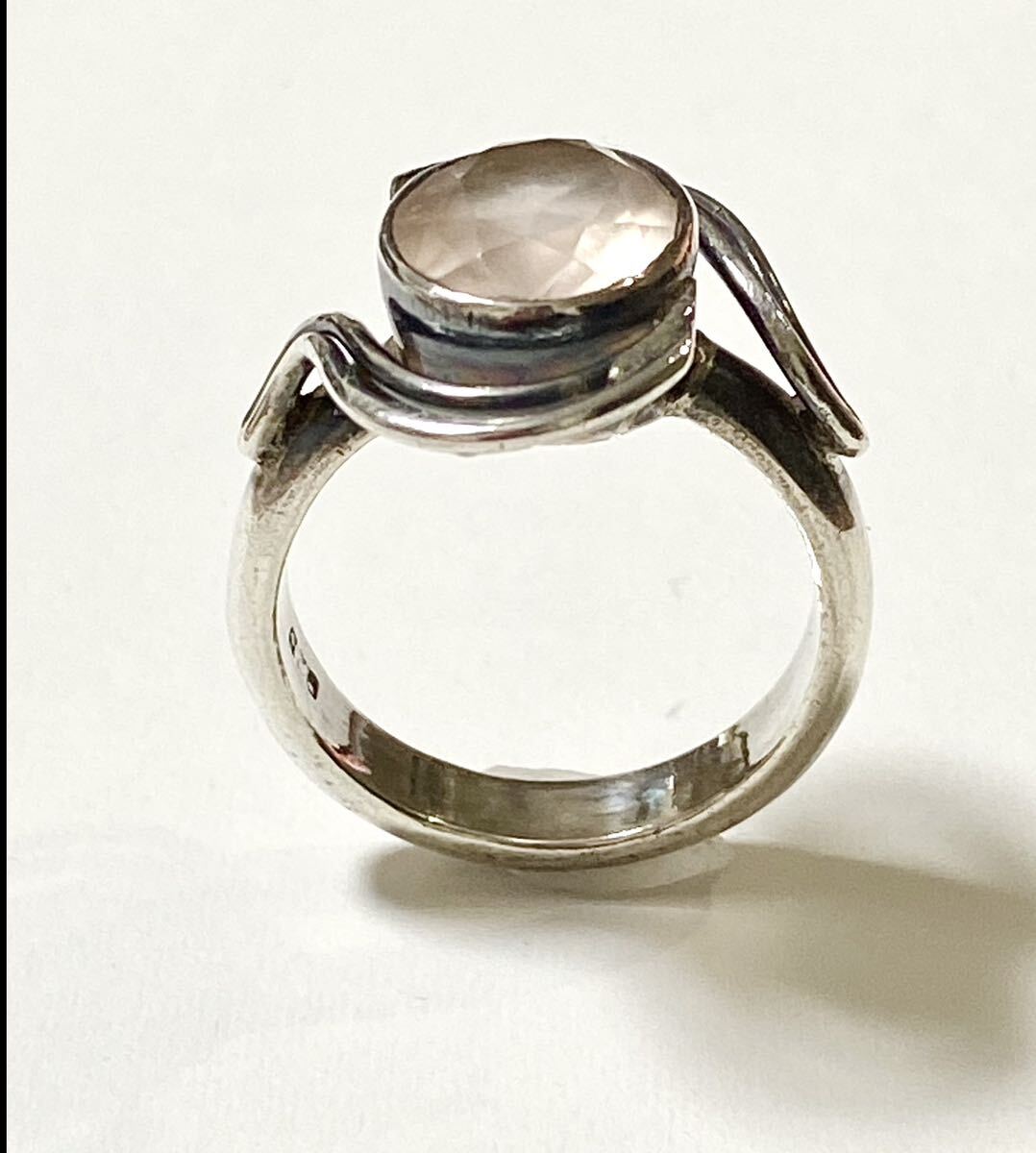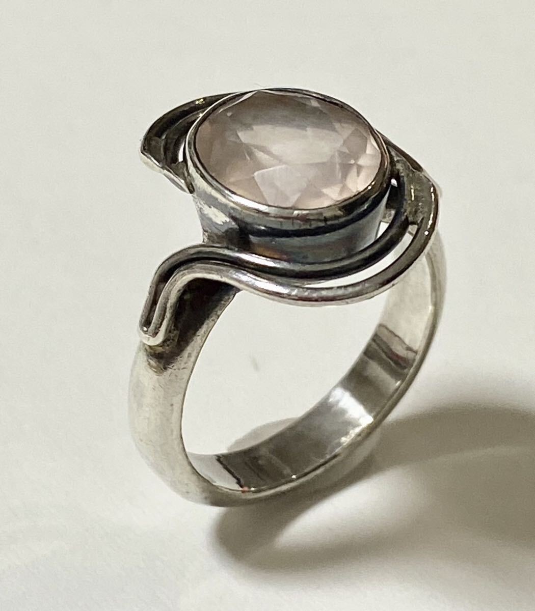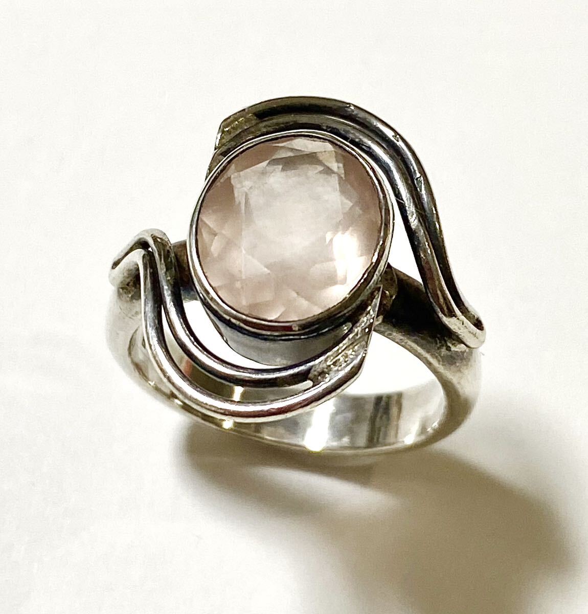 淡いピンク色のローズクォーツは綺麗にカットされています。