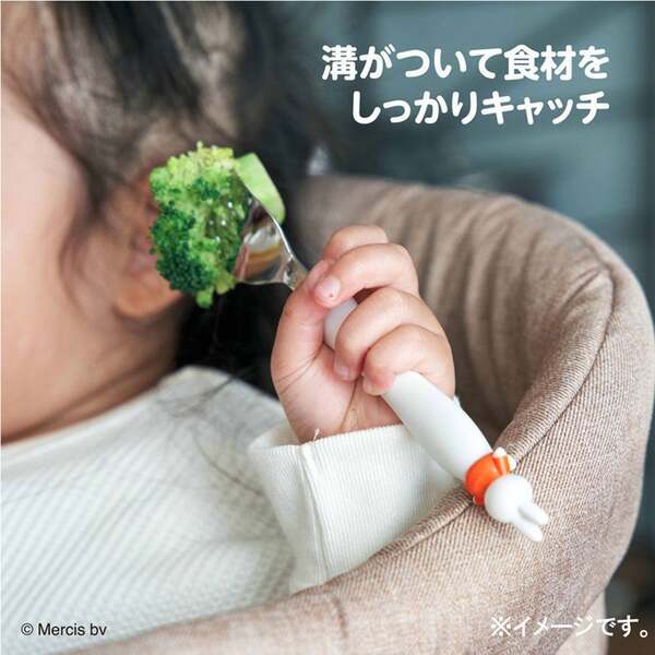 1.5歳の小さなお子様から使えるフォークとスプーンのセットです。 成長に合わせた握り方をサポートし、お子様もキレイに食べられます。 ちょこんと座ったかわいらしいミッフィーがお食事を応援! ・フォーク ・溝がついて麺や食材がすべり落ちない。 ・食べにくい麺類もしっかりキャッチし、こぼさず上手に食べられます。 ・スプーン ・平らな面で最後までキレイに。 ・ヨーグルトカップや食器などの面にフィットし、最後までキレイにすくえます。 個装サイズ:86X216X28mm 個装重量:約60g 内容量:1セット入 製造国:日本 【発売元:株式会社ケイジェイシー】 【セット内容】 フォーク・・・1 スプーン・・・1 【材質】 マスコット・・・ABS樹脂 取っ手・・・ポリプロピレン 先端部・・・ステンレス 【耐熱温度】 80度 【対象年齢】 1.5歳頃~ 【注意】 ・必ず指導者の目の届く所でご使用ください。 ・用途目的以外のご使用はおやめください。 ・キズ、破損、亀裂、変形などが生じた場合は、すぐにご使用をおやめください。 ・持ったまま転ぶと、目やのどに当たり思わぬケガをする場合があります。 ・フォークの隙間に指や舌、歯を入れないでください。 ・マスコット部は引っ張ったり噛んだりしないようにご注意ください。 ・初めてご使用される前に、必ず洗浄をしてください。 ・ご使用後は必ず洗浄をしてください。 洗浄の際は柔らかいスポンジと食器用洗剤をご使用ください。 磨き粉やたわしなどのご使用はおやめください。 ・洗浄後はよく乾燥させ、お子様の手の届かないところに保管してください。 ・麺はフォークの奥までしっかりからませてご使用ください。 麺の細さや状況によって麺が落ちる場合があります。 ・直火、オーブングリル、電子レンジではご使用いただけません。 ・火のそばに置かないでください。 ・塩素や酸などを含んだ汚れが付着したまま放置しないでください。 ・落とすなど強い衝撃を与えると破損する恐れがあります。 注意事項 予告なく成分・パッケージが変更になることがございます。 予めご了承ください。 *予告なく成分・パッケージが変更になることがございます。予めご了承ください *ダンボールを使用して発送する場合には、入数以下の個数の場合、 中古ダンボールを使用する場合があり、ご注文の商品とは異なるダンボールになる場合があります。 あらかじめ、ご了承ください。 |