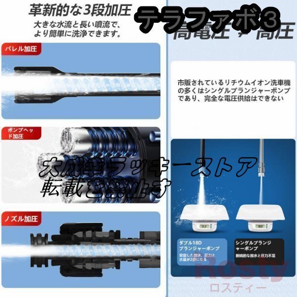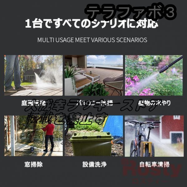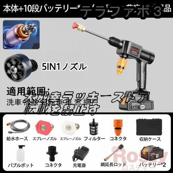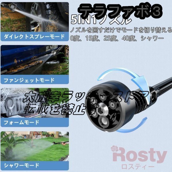 充電式 高圧洗浄機 コードレス 大容量高圧 バッテリー付2枚き 5MPa最大吐出圧力 水噴射量5.2L/min 7種類噴射モード洗車 強力噴射