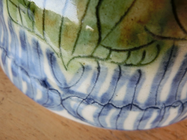 所々にピンホール大の釉抜けや貫入、ブク、生地や釉薬のムラや擦れ、