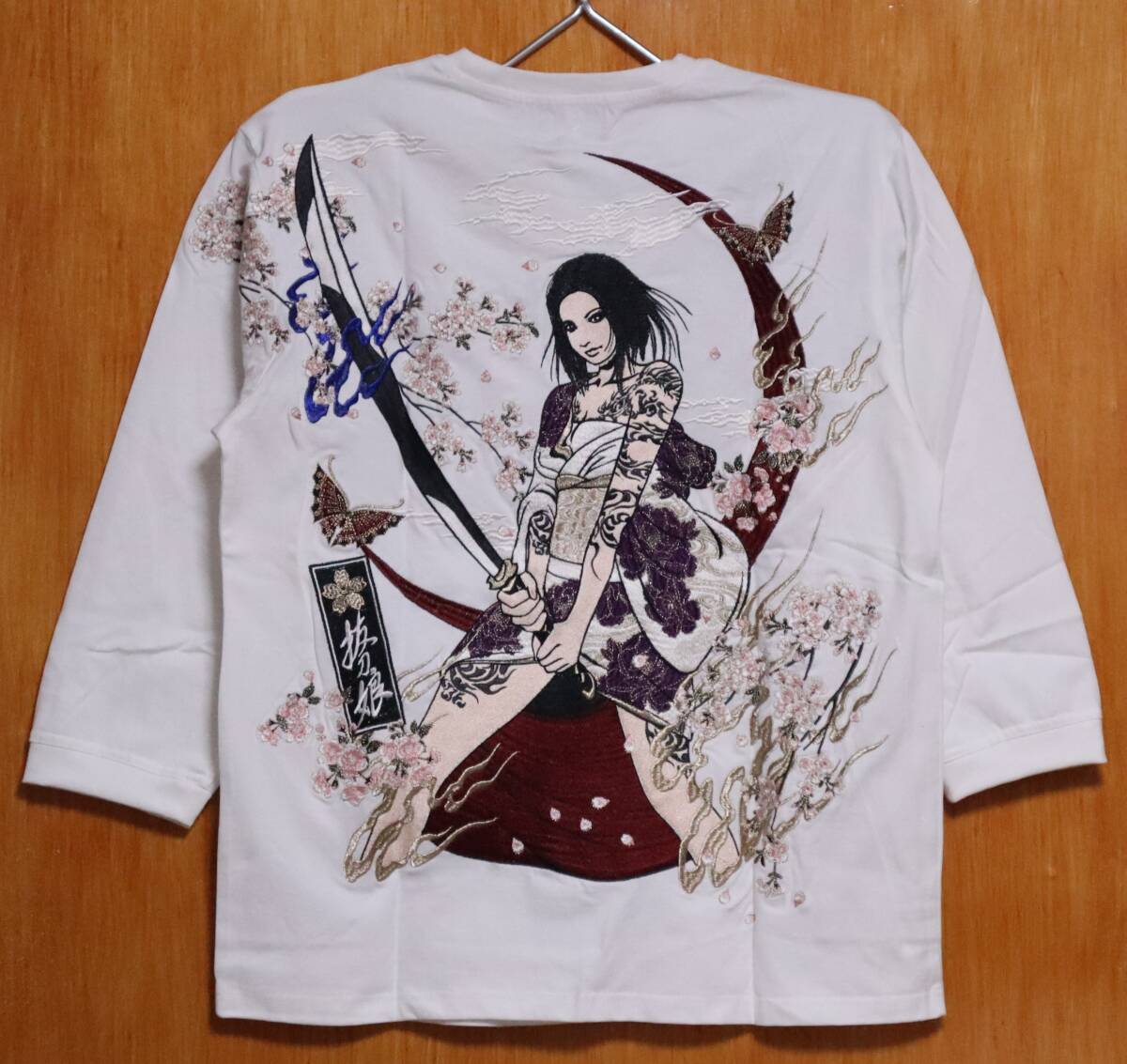 抜刀娘 価値のあるオール刺繍の7分袖Tシャツです。