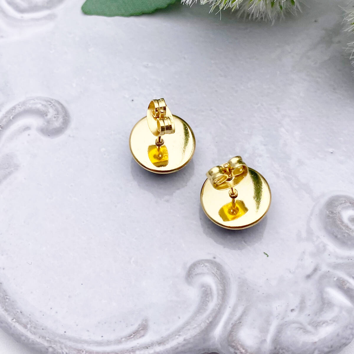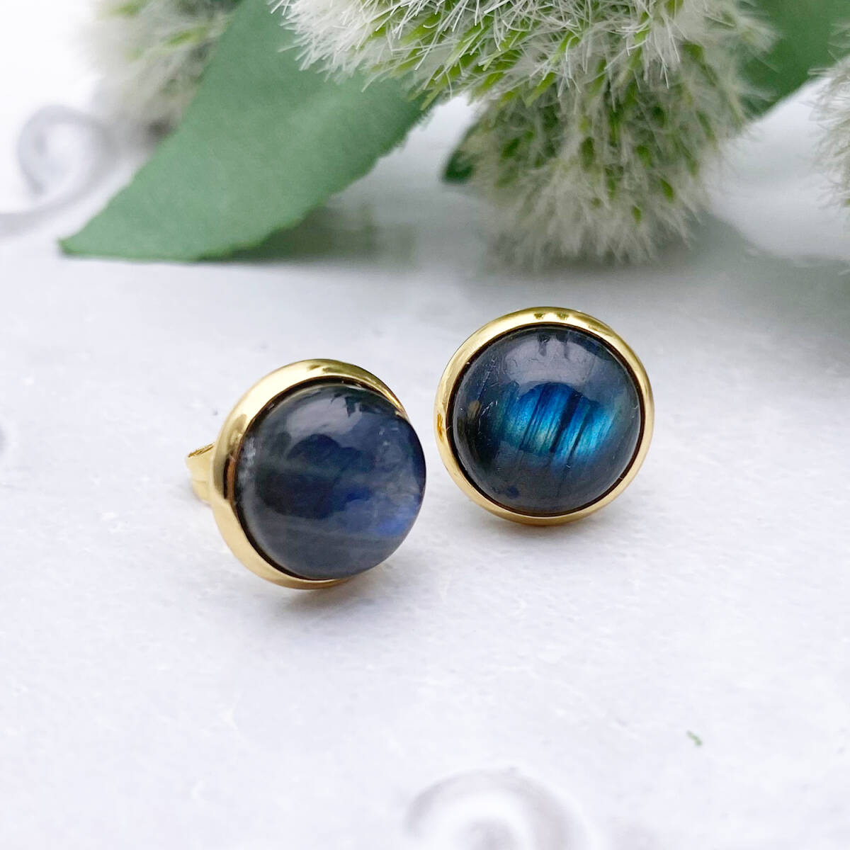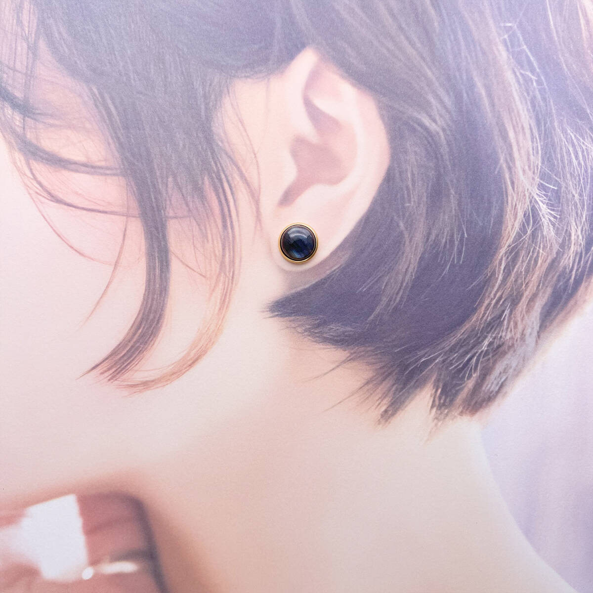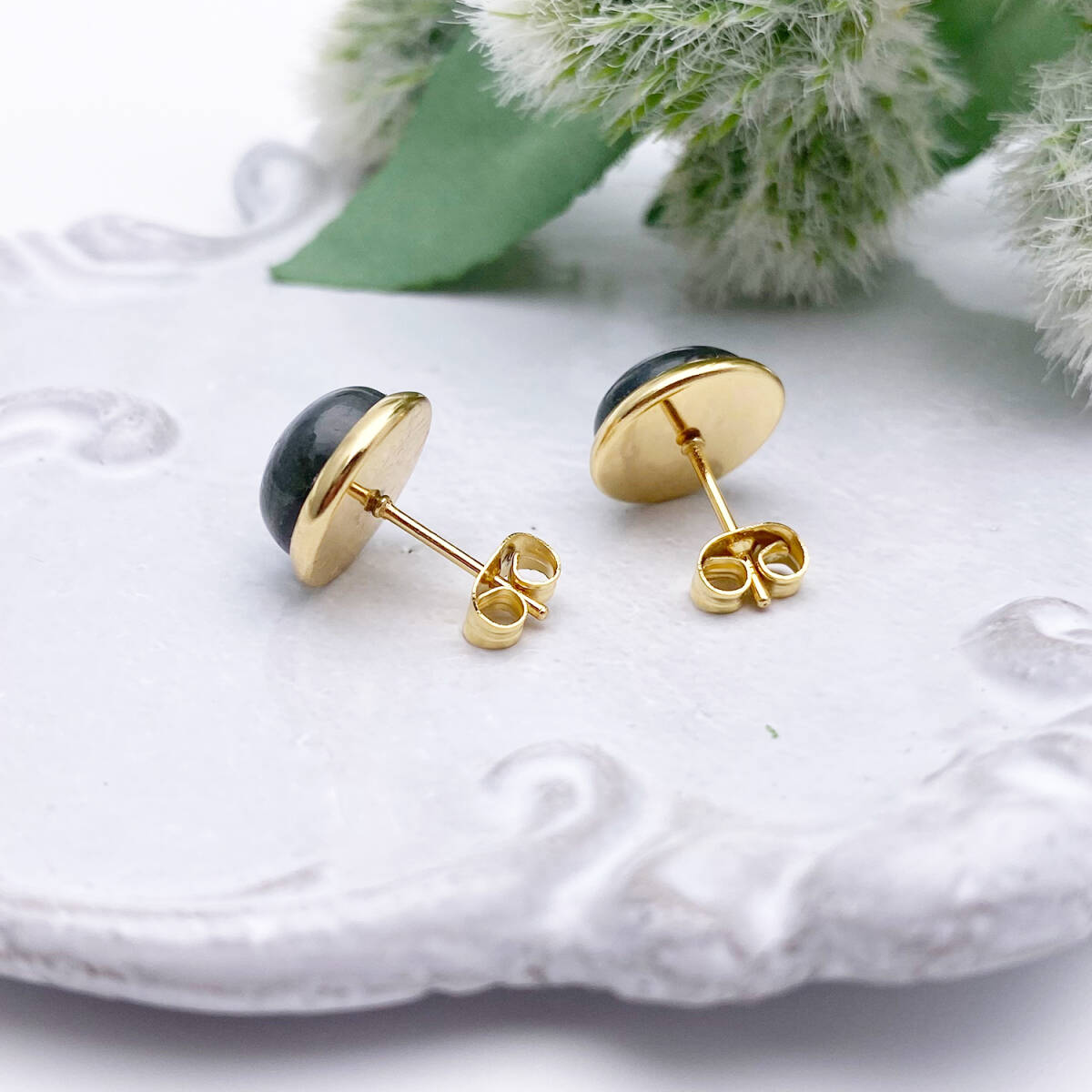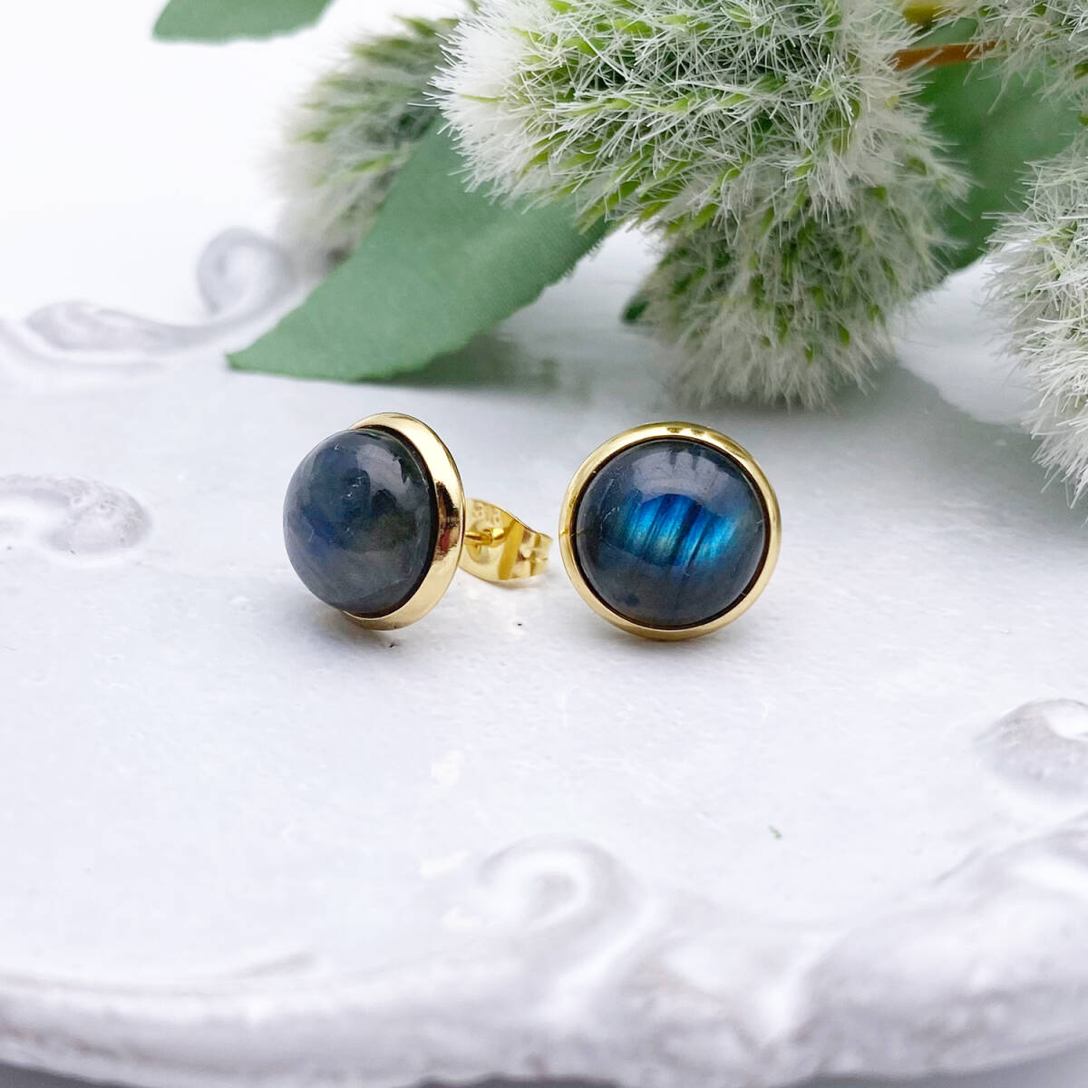 【宝石質】ブラックラブラドライトカボション10mmスタッドピアス/24kgp/天然石・パワーストーン/ハンドメイド