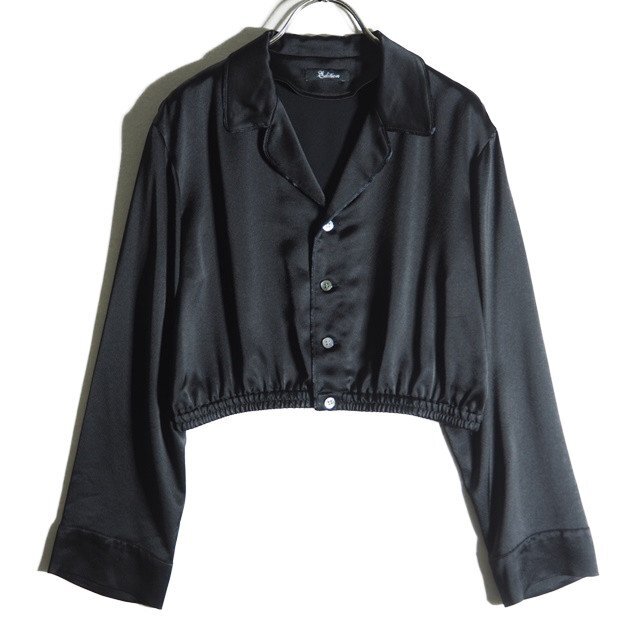 M8547f6 ▼Edition エディション▼ サテンクロップドシャツ ブラック / 黒 ブラウス レディース ショート丈 トゥモローランド 春夏