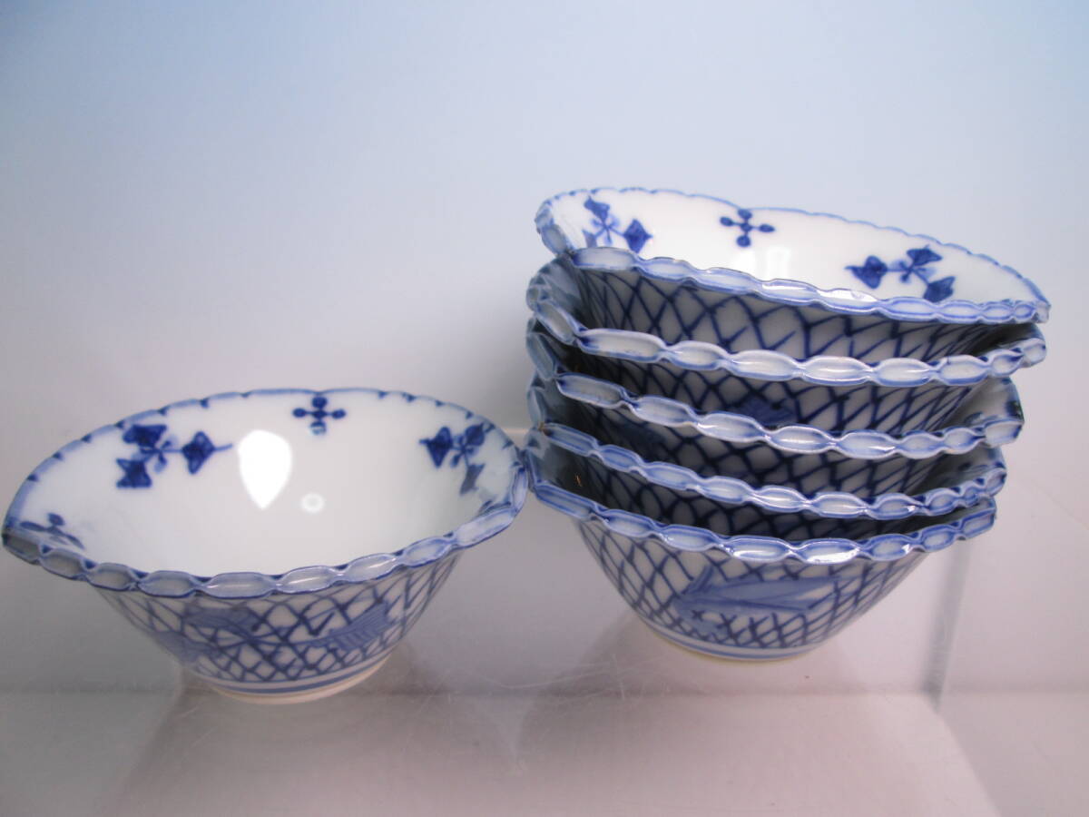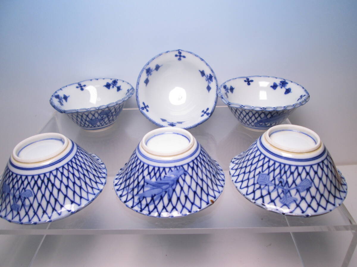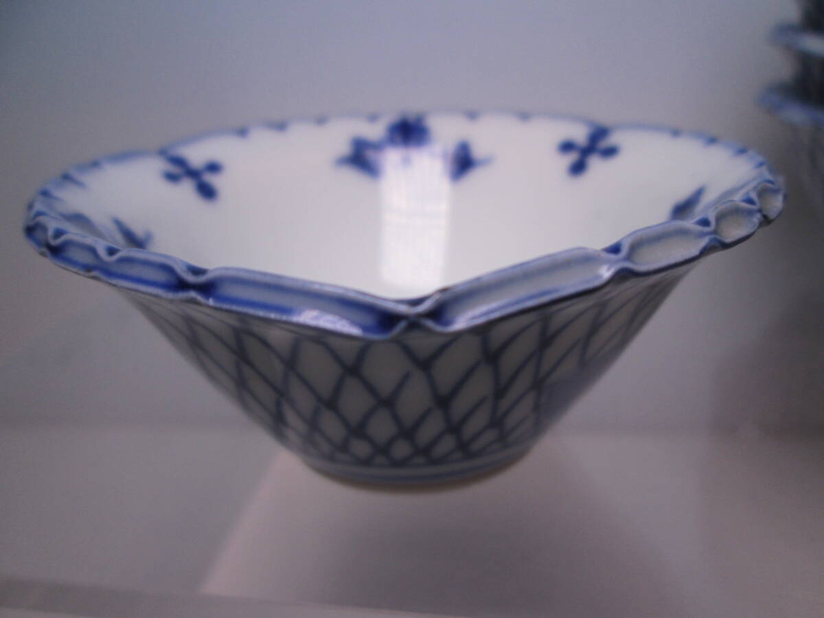 ☆お料理屋さんの器 京焼 染付網目文 豆小鉢 六客 小向付/小皿/懐石/割烹/日本料理