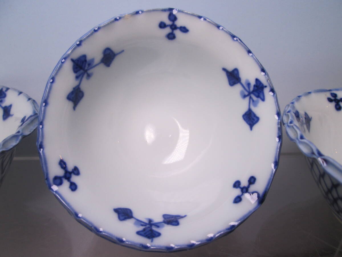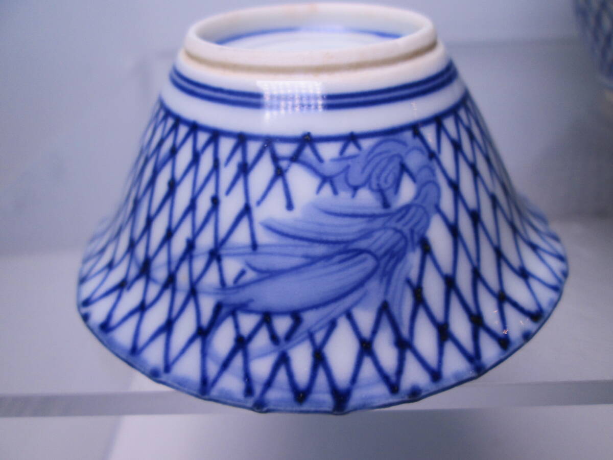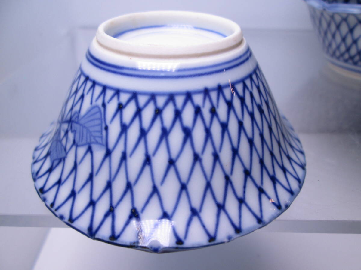 ☆お料理屋さんの器 京焼 染付網目文 豆小鉢 六客 小向付/小皿/懐石/割烹/日本料理