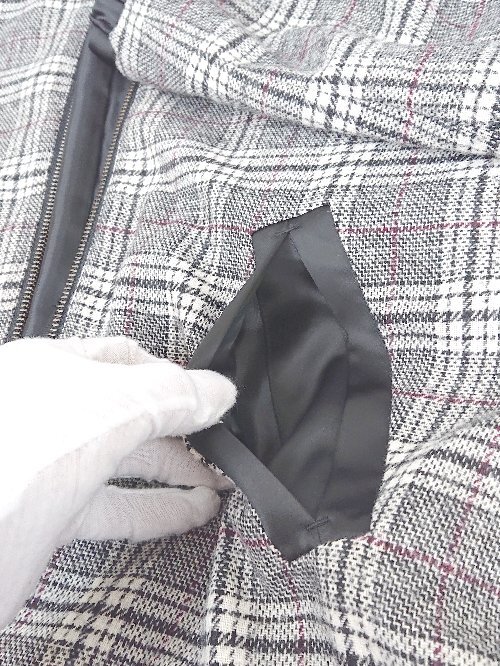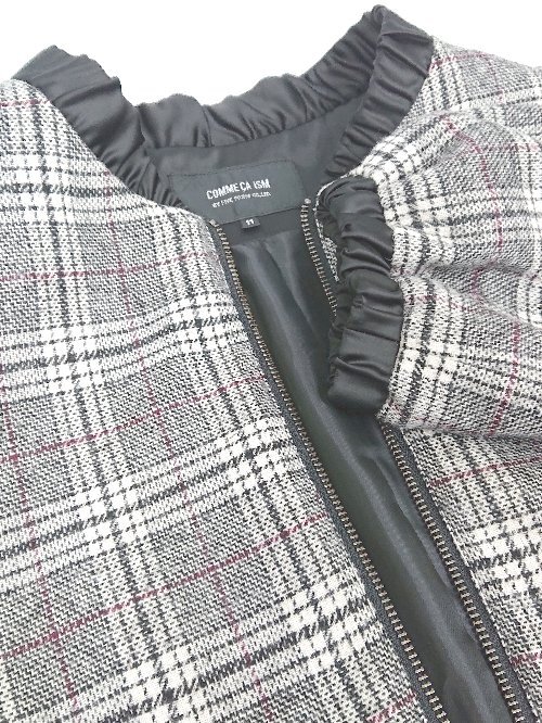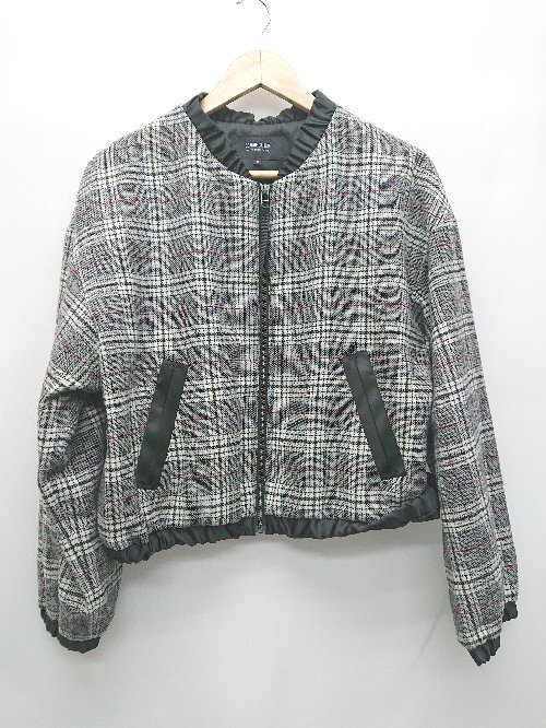 ◇ COMME CA ISM コムサイズム チェック ジップアップ 長袖 ジャケット ブルゾン サイズ11 ブラック ホワイト レディース P