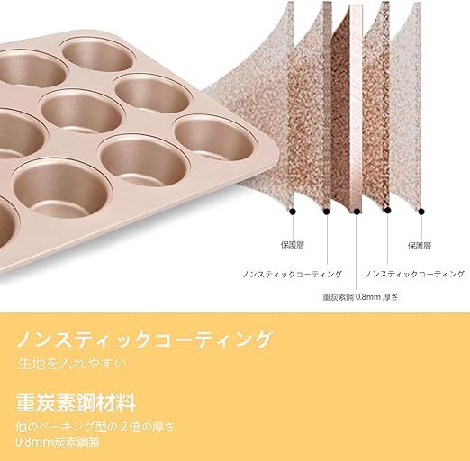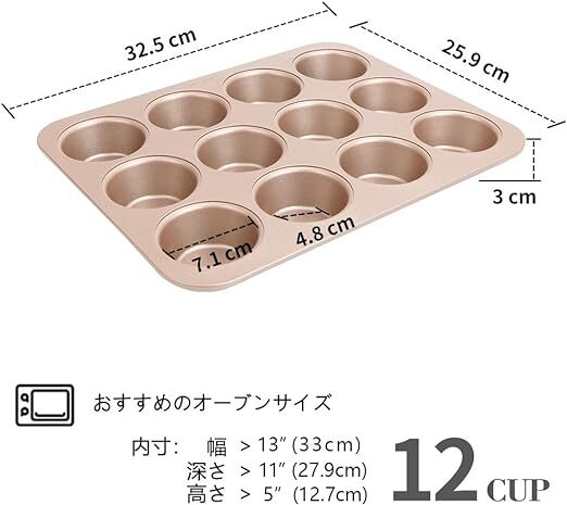 【新品】CHEFMADE マフィン型 12個型 カップケーキ型 FDA認証 シャンパンゴールド