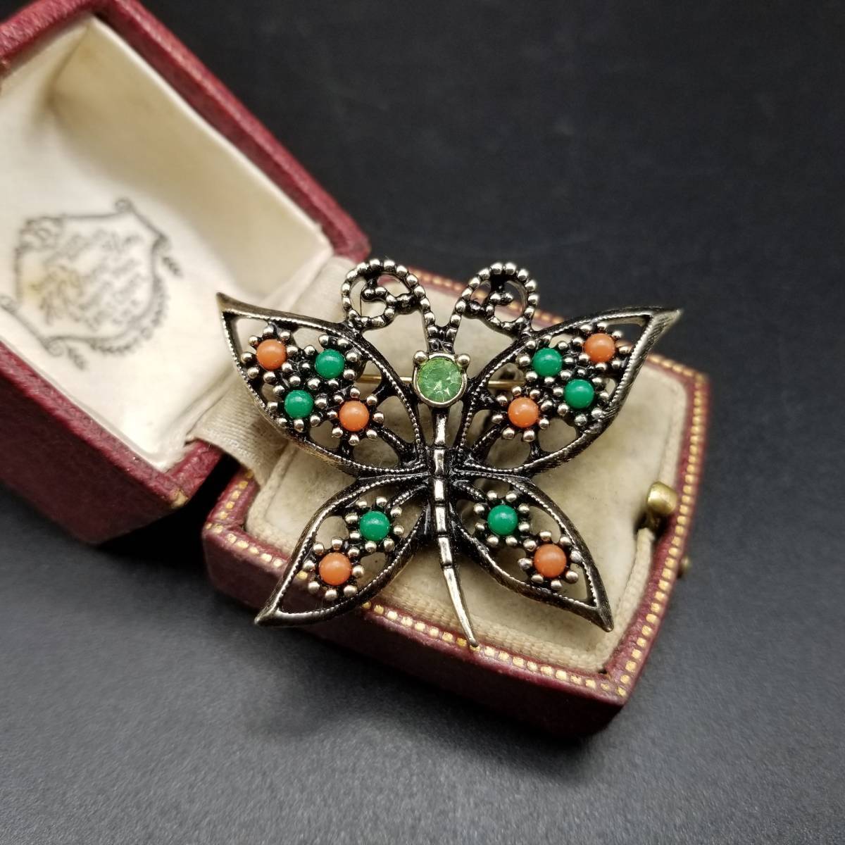 SARAH COVENTRY 透かし カラフルな羽の蝶 ヴィンテージ ブローチ 昆虫モチーフ レトロ コスチュームジュエリー オープンワーク YDB55