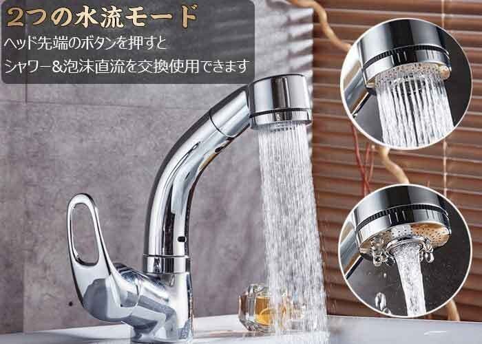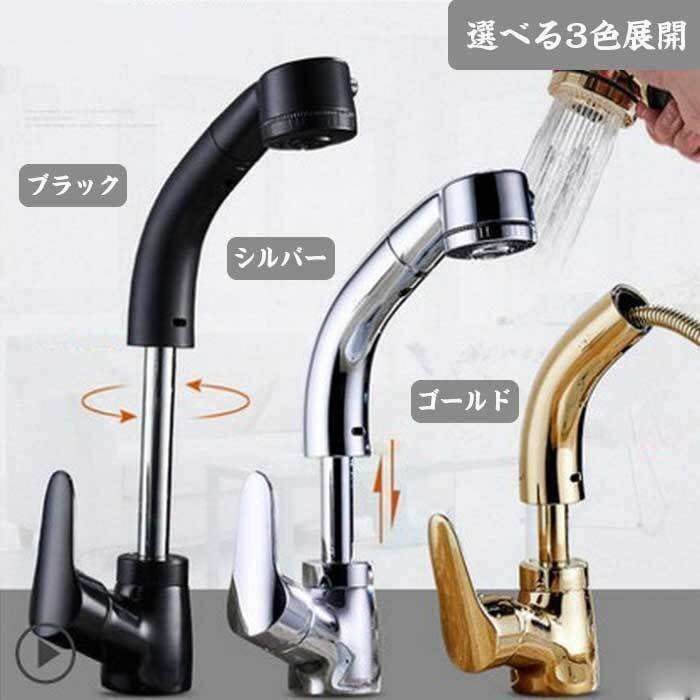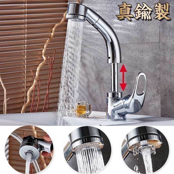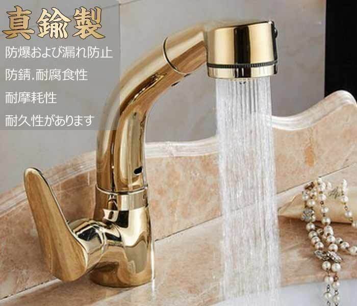 浴室洗面台蛇口 2方に吐水式 キッチン蛇口 浴室用水栓 洗面 洗髪用 蛇口 上下に動き引き出せる 真鍮製 伸縮 360度回転 ☆3色選択/1点