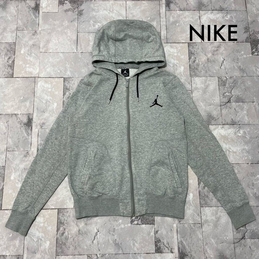 NIKE ナイキ Jordan ジョーダン sweat hoodie スウェットパーカー ジップアップ フード サイドポケット グレー サイズS 刺繍ロゴ 玉FL3525