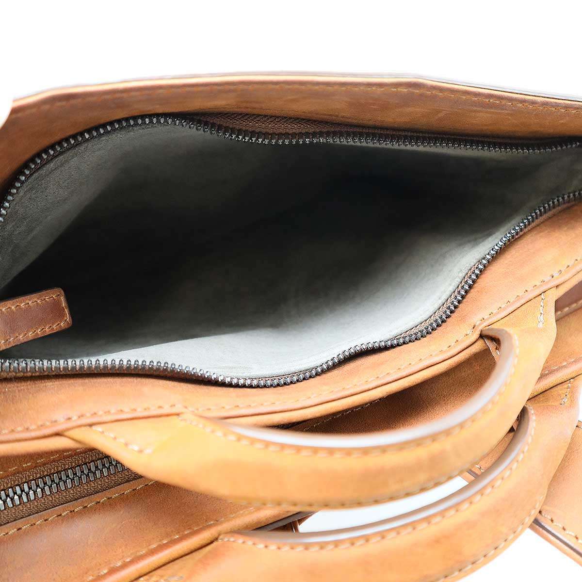 所々にレザー特有の擦れや変色、内側にやや薄汚れがございます。
