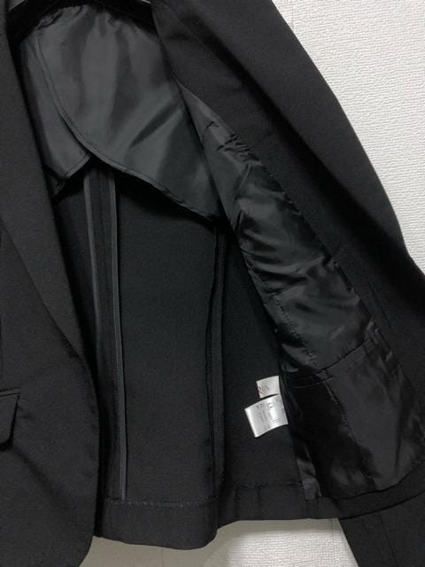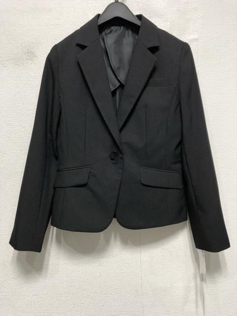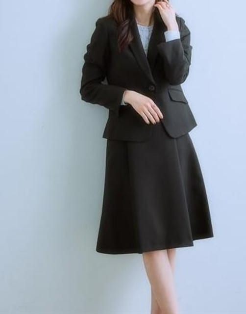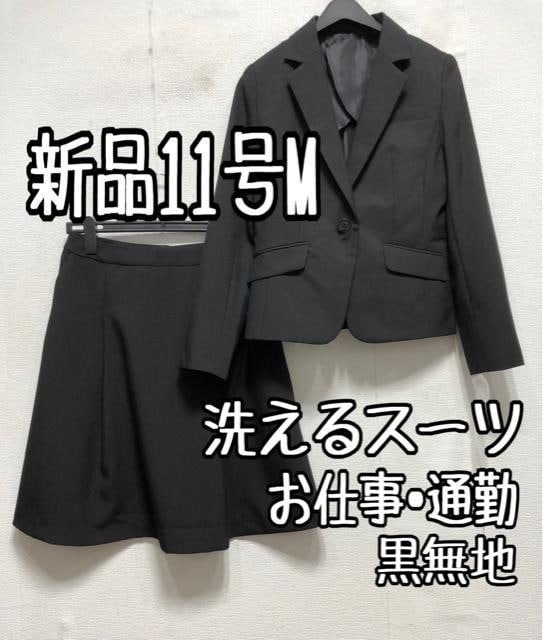 新品☆11号M黒系無地♪タックフレアスカートスーツ♪お仕事オフィス☆a433