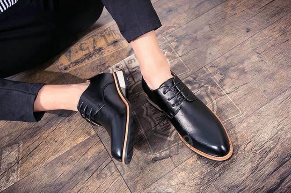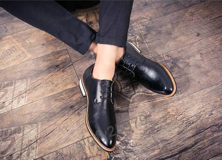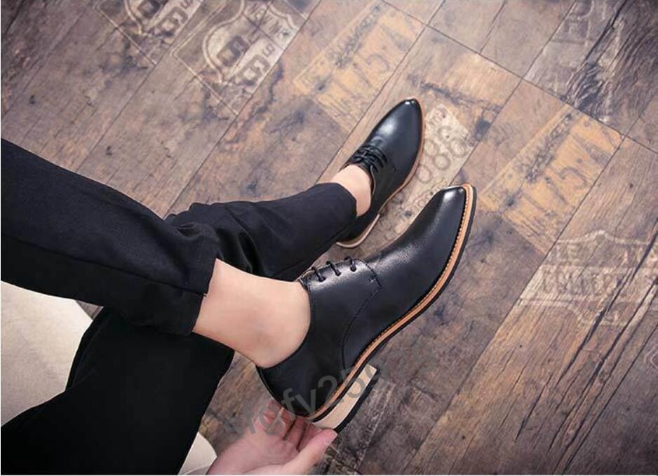 J251☆新品春夏 上質 レトロ 本革 メンズ カジュアル ビジネスシューズ 黒 サイズ 24~27選択 選択/26.5サイズ