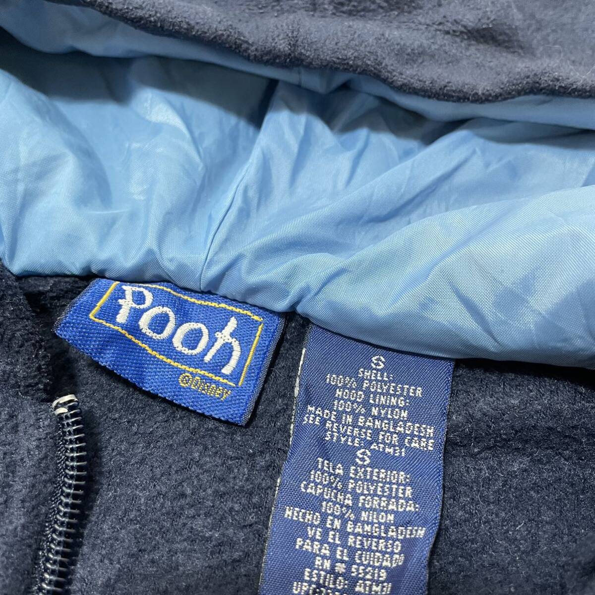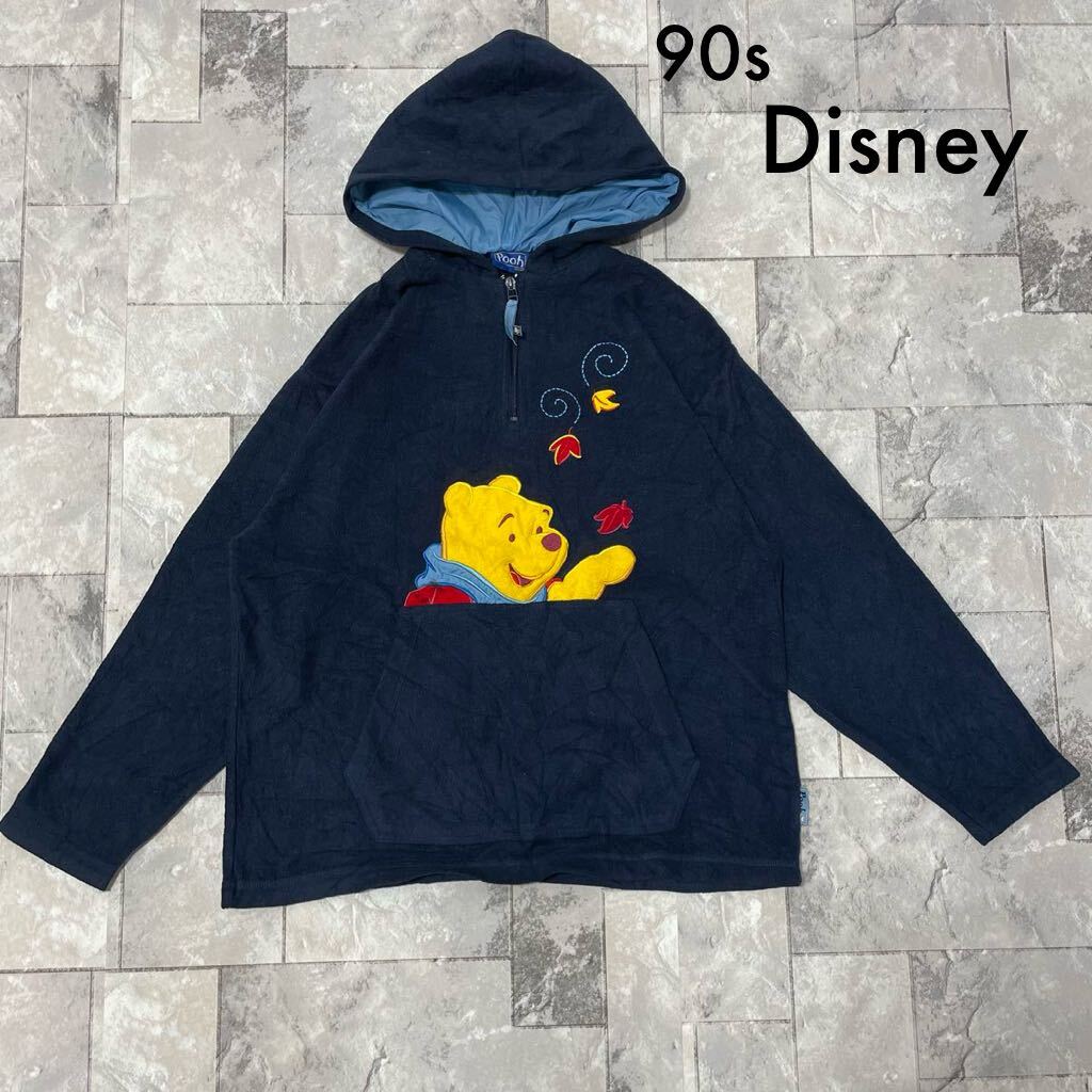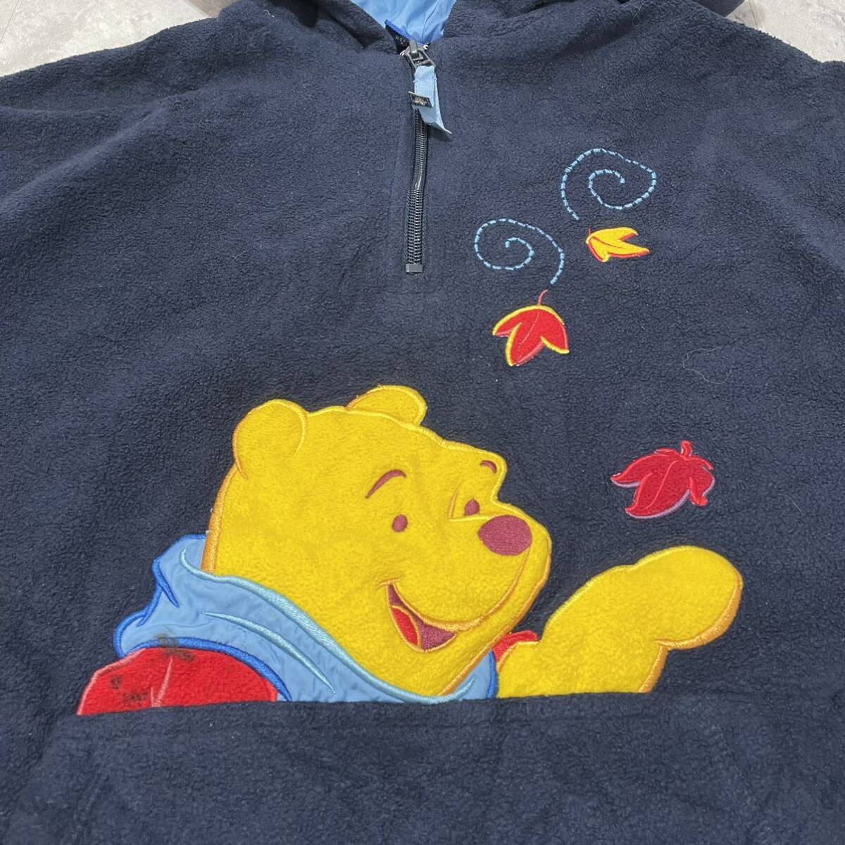 90s Disney ディズニー pooh くまのプーさん ハーフジップ フリースパーカー スウェット 刺繍ロゴ ヴィンテージ USA企画 ネイビー 玉FL3564