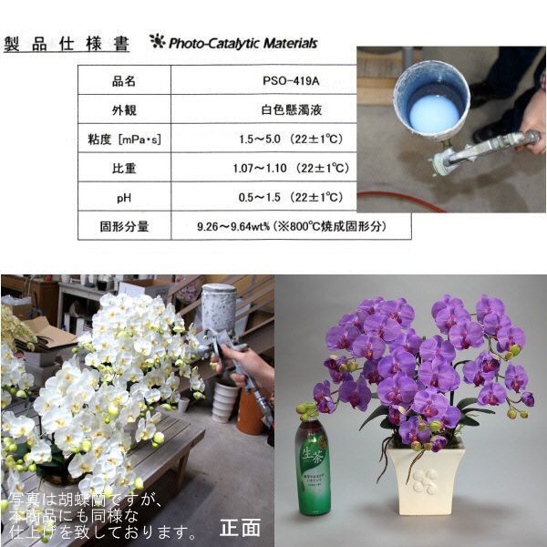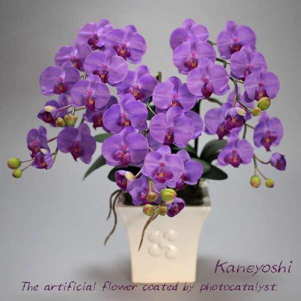 胡蝶蘭小輪の造花に光触媒加工が施してあります。