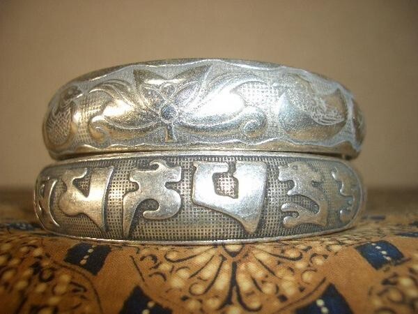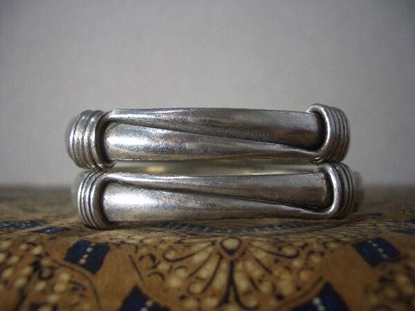 【商品説明】洋銀製の腕輪2点セットです。伸縮可能の為フリーサイズです。*純銀製ではなく、洋銀(銅の合金)製です。【サイズ】内径約21センチ・太さ約1.3センチ【平成26年6月7日出品】