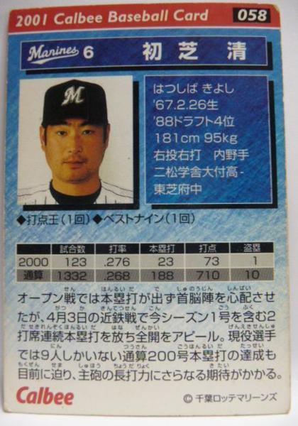 カルビープロ野球カード2001年#058【初芝 清(千葉ロッテ マリーンズ)】平成13年チップスおまけ食玩トレーディングカード【中古】送料込
