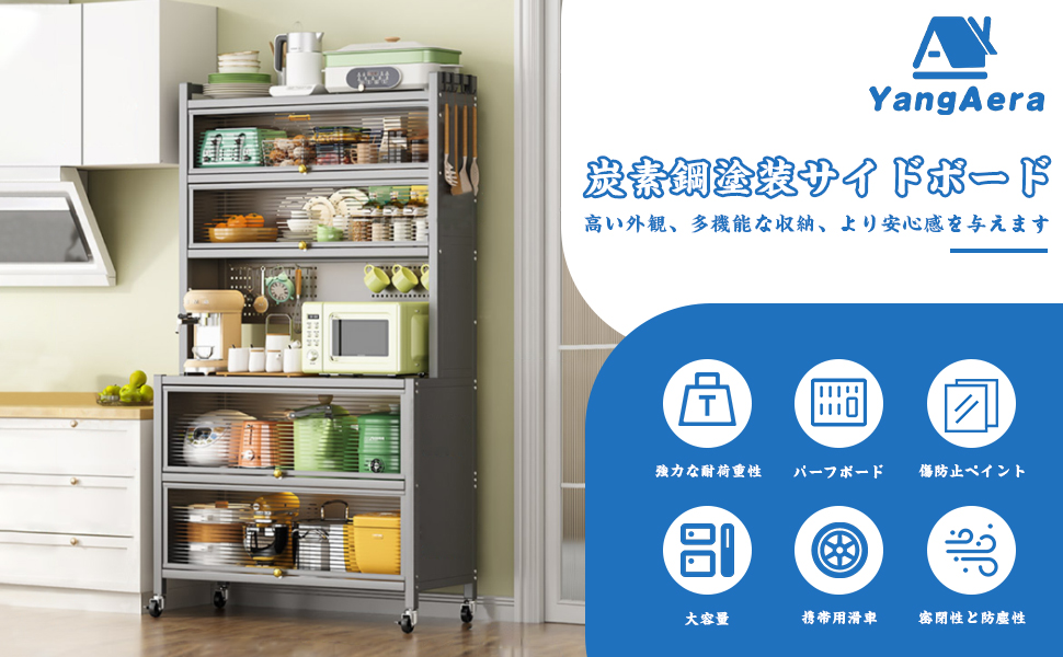 【マルチシーン使用】キッチン、ダイニングルーム、リビングルーム、書斎などに適しています。 サイドボードや食器棚として使用でき、タオル、バスアメニティ、スパイス瓶、スナック、果物、靴、その他のアイテムも保管できます