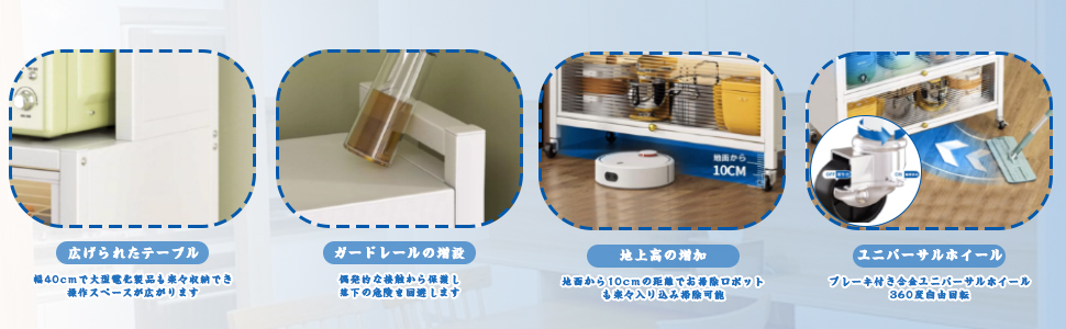 【大容量収納】奥行き40cmの操作面で大型家電も置きやすい、上部の大きな収納台は階層構造で耐荷重性に優れ、バケツを置いても問題なく、もっと簡単に保管できます