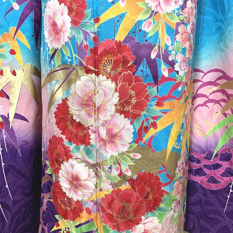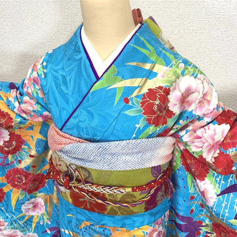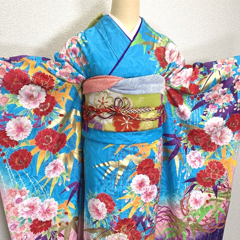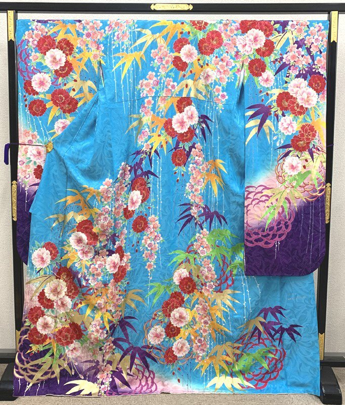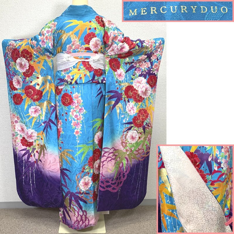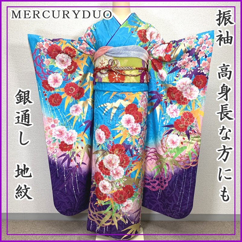 〇高身長な方にも 振袖 MERCURYDUO 銀通し 成人式 結婚式〇美品 (No.efd) 銀糸が織り込まれた乱菊の地紋が浮かび上がる鮮やかな水色と紫の地に、桜や竹、菊の模様がある華やかな振袖です。前身頃にはポイント刺繍が施されています。「MERCURYDUO」(マーキュリーデュオ)のお品物です。 (画像の袋帯211y9、重ね衿、帯締め、帯揚げは参考商品ですが、在庫がある場合に限り+16000円で振袖とセットでお譲りすること可能です。) USED品ですが、目立つようなシミ・ダメージもなく美品です。 【素材】正絹(ただし胴裏は化繊) 【色】水色、紫 *モニターによって色味は実際と異なる場合がございます。 【サイズ】