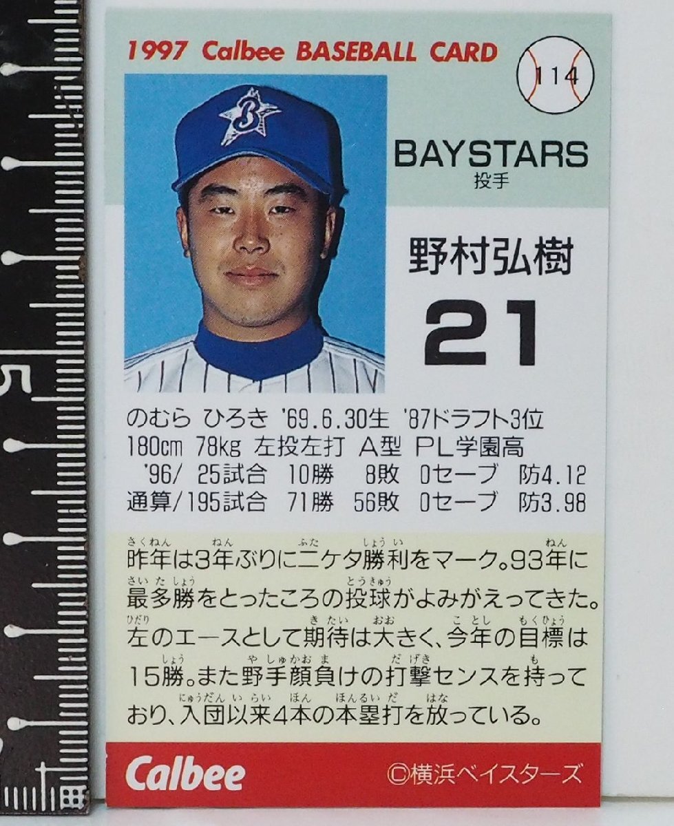 97年 カルビー プロ野球カード 114【野村 弘樹 投手 横浜ベイスターズ】平成9年 1997年 当時物 Calbeeおまけ食玩BASEBALL【中古】送料込