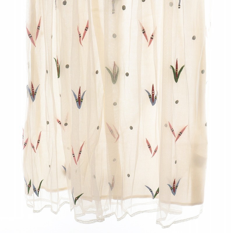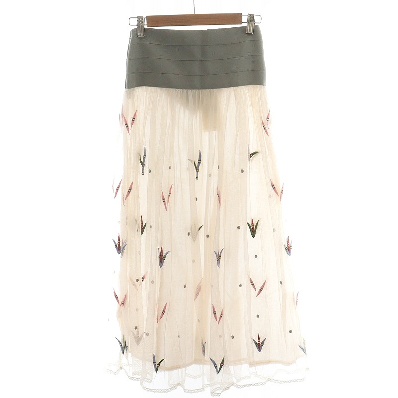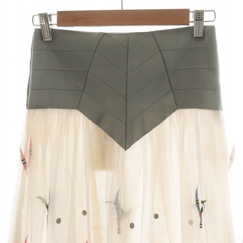 未使用品 クイーンアンドベル QUEENE AND BELLE フレアスカート ミモレ ロング チュール 刺繍 XS グレー 白