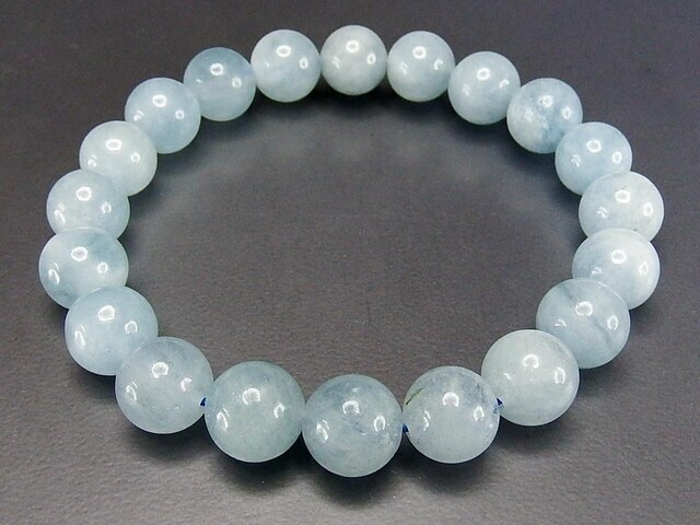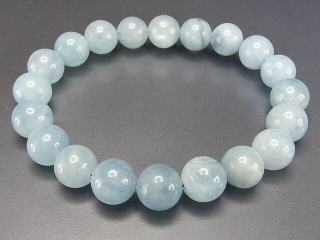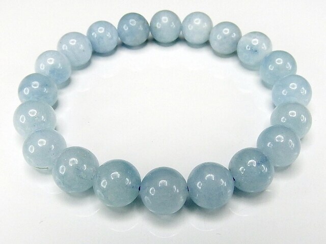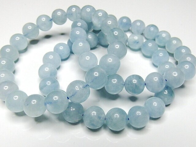 AAA+キャンディーブルー アクアマリンブレスレット約9.5mm天使の石極美天然石3月の誕生石プライム