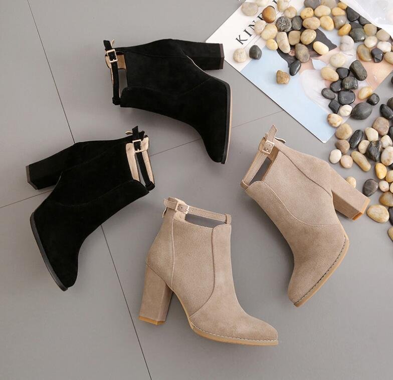 ★新品秋冬 レディースショートブーツ ブーティー ローヒール ハイヒール太ヒール 美脚 歩きやすい 大きいサイズ 22.5~26cm A0244