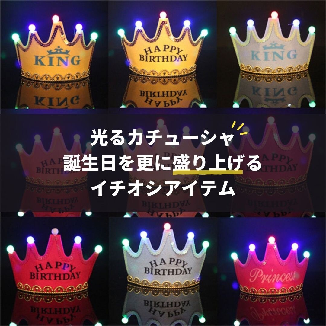 大切な家族、パートナー、友達。1年に1度の誕生日を素敵にお祝いしたいですよね。どうせならびっくりさせたいなー!そんな時こそ、光る王冠バースデーカチューシャです!