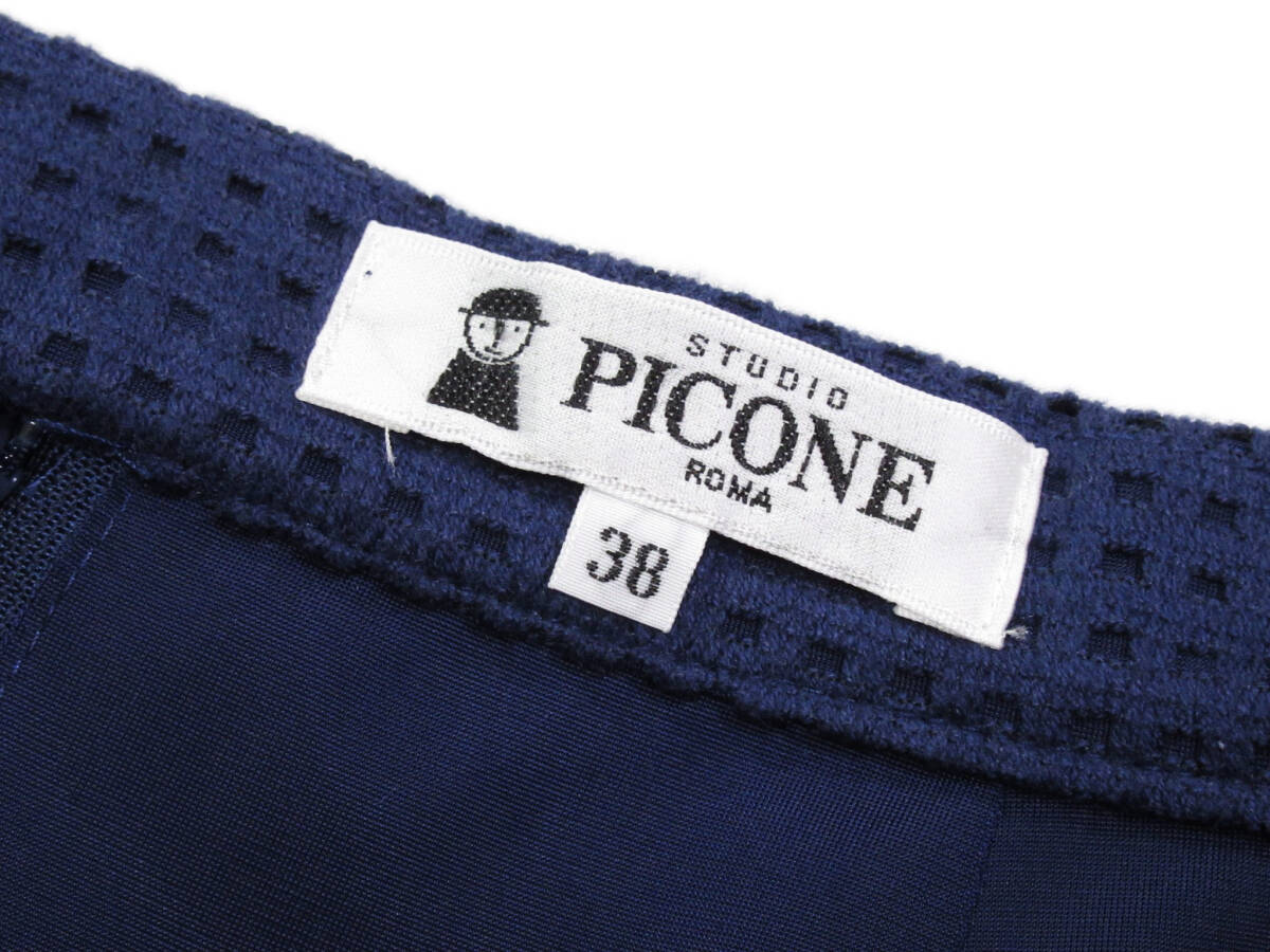 ピッコーネ スカート サイズ:38 お色:ネイビー 素材:表地 コットン85 ポリエステル15 裏地 ポリエステル100% 平置き実寸で w33.5×2 着丈61㎝位です。 |