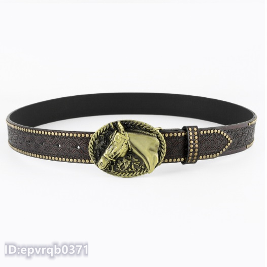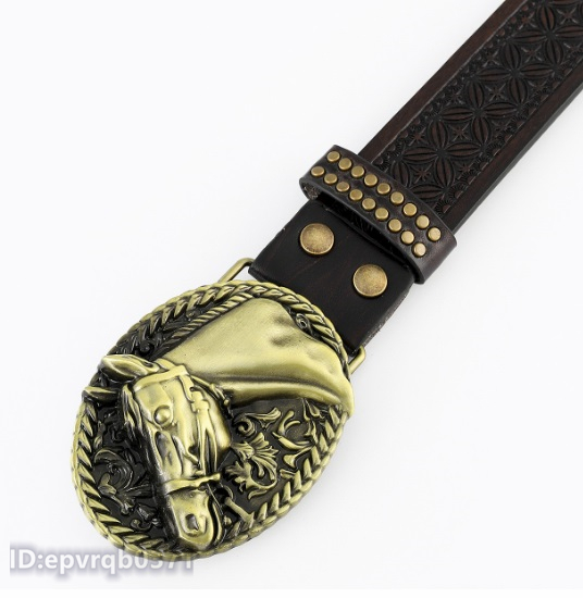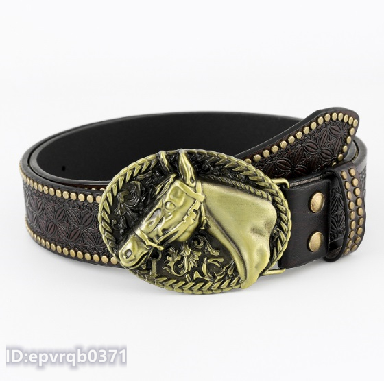 ベルト◇新入荷 ピンバックル式 メンズ レザーベルト バックルウマ 柄物 革ベルト ポンチ付き 長さ調整可能 /茶色