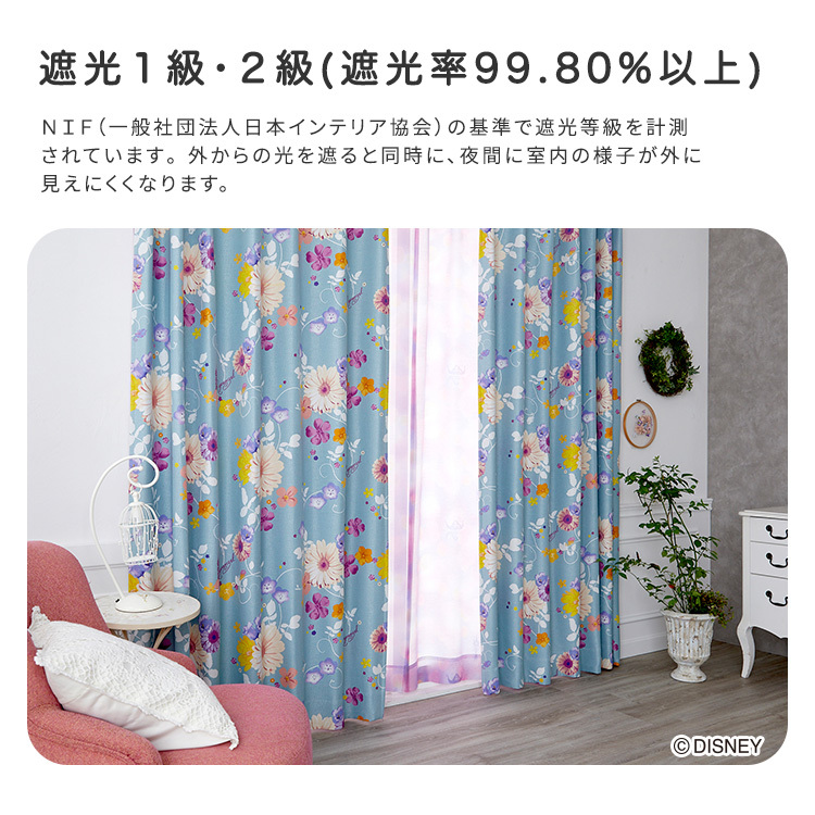 DISNEY/ディズニー ドレープカーテン 100×200cm×1枚 PRINCESS/Tangled タングルド アイボリー