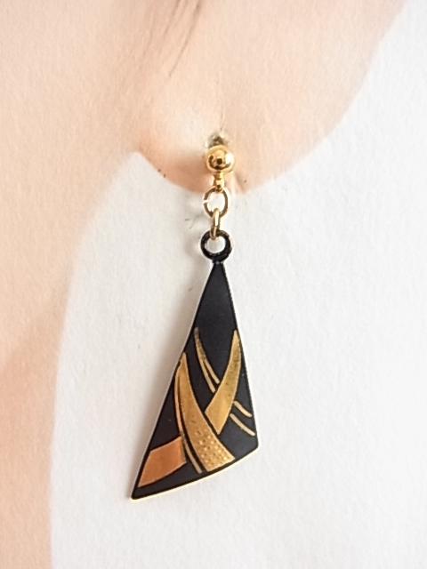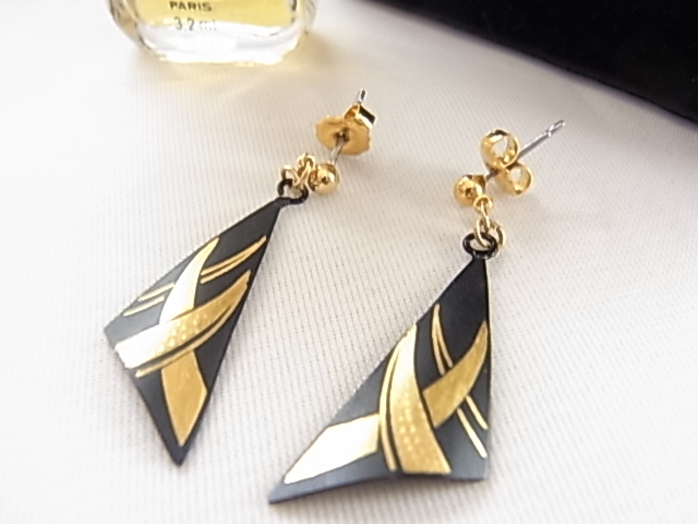 ビンテージ/ヴィンテージ 和モダンテイスト 和装 着物にも素敵 黒色トーンと金色トーンの2色が綺麗 軽量 耳元で揺れる ピアス▽