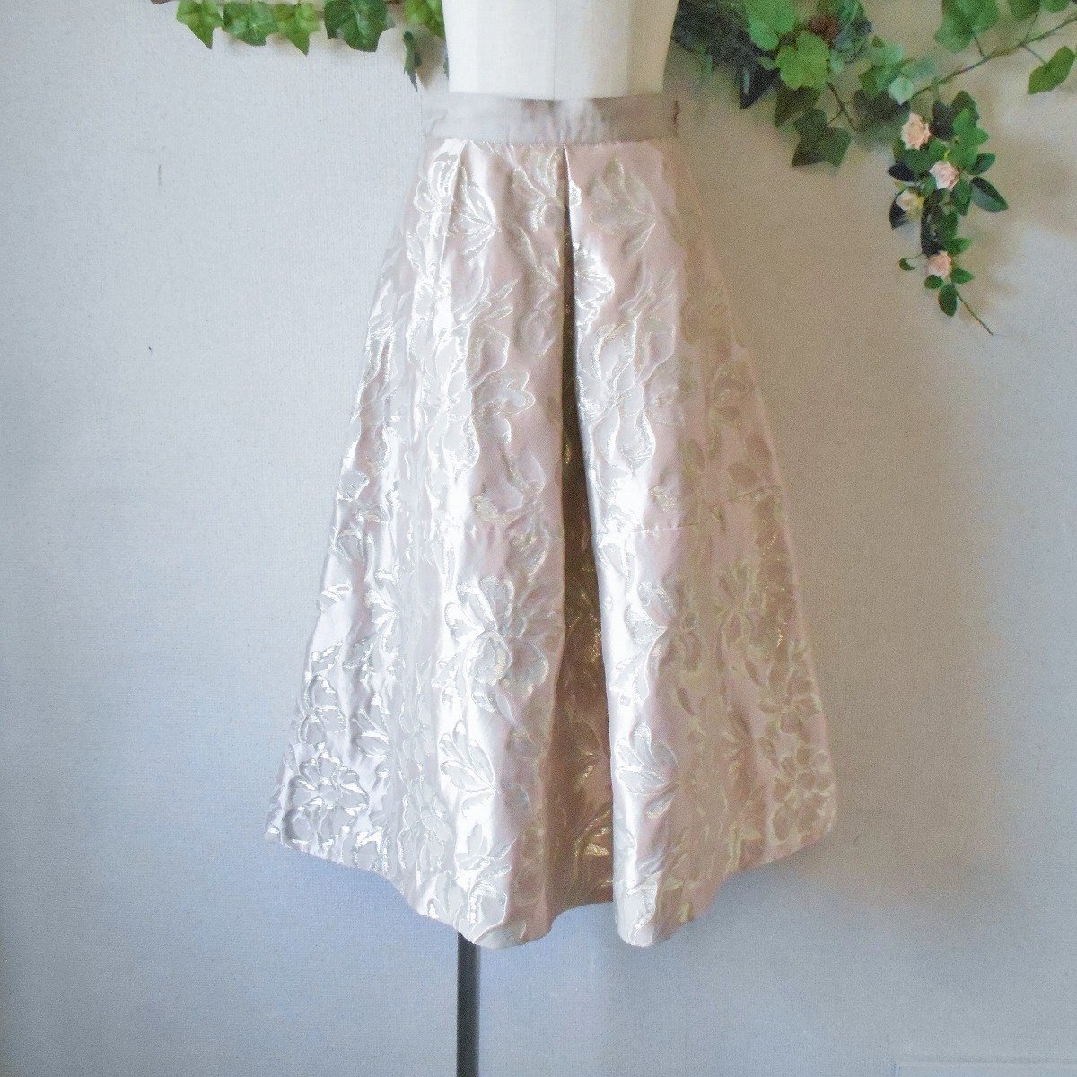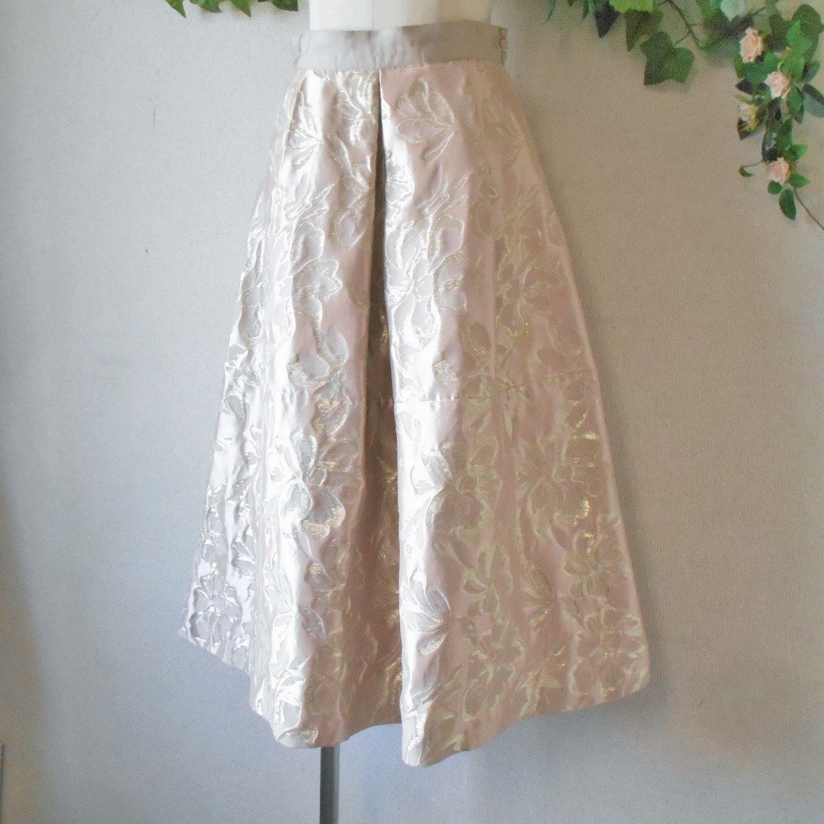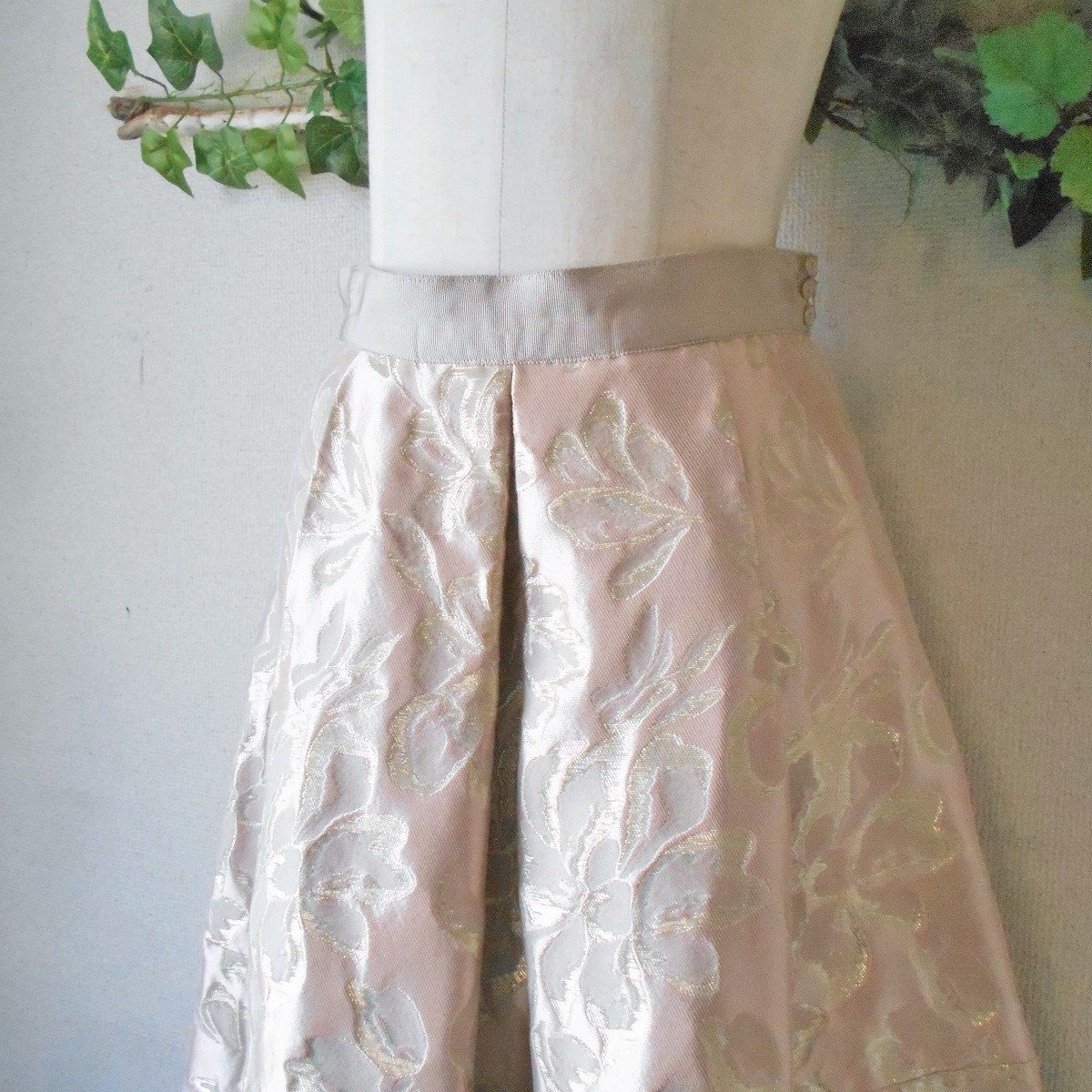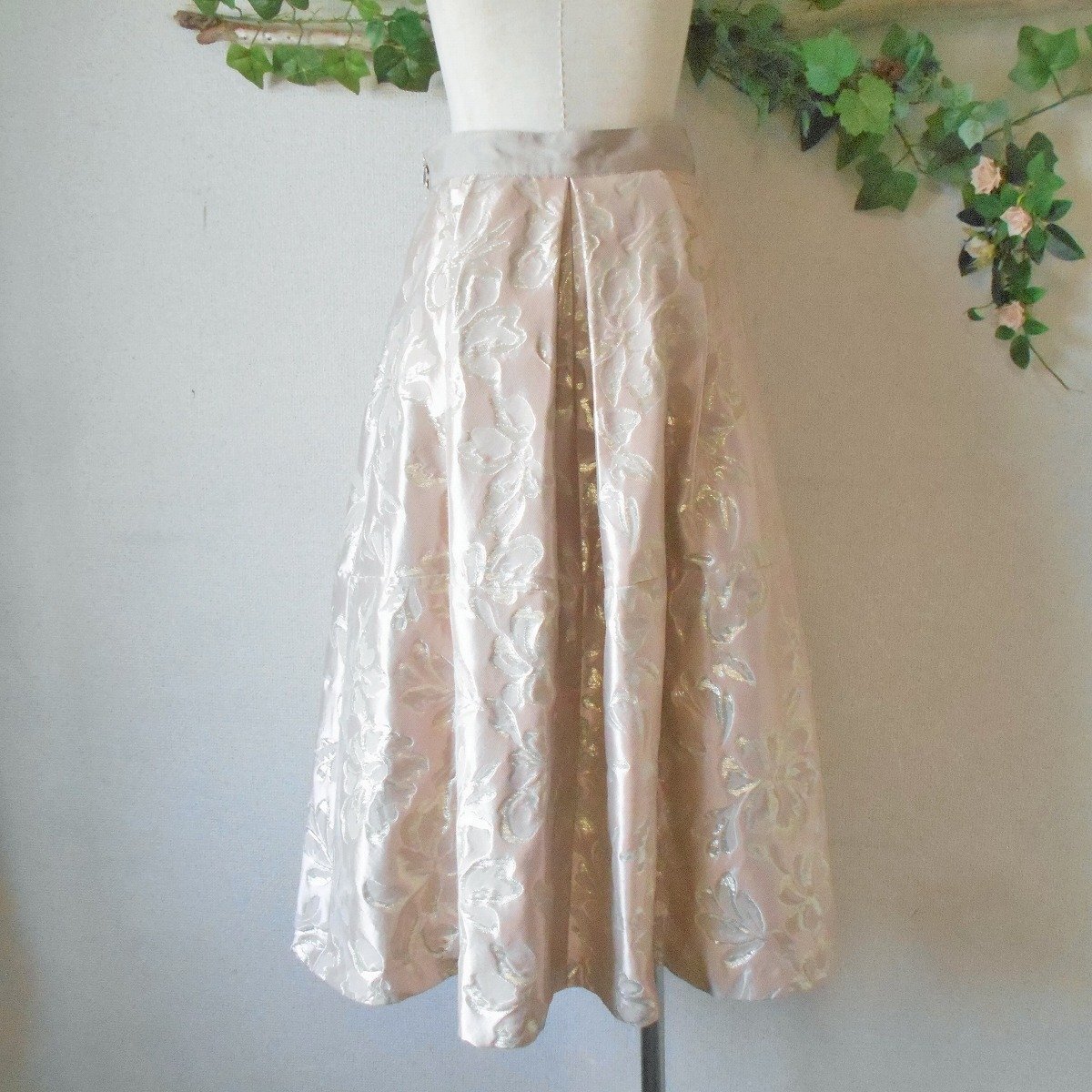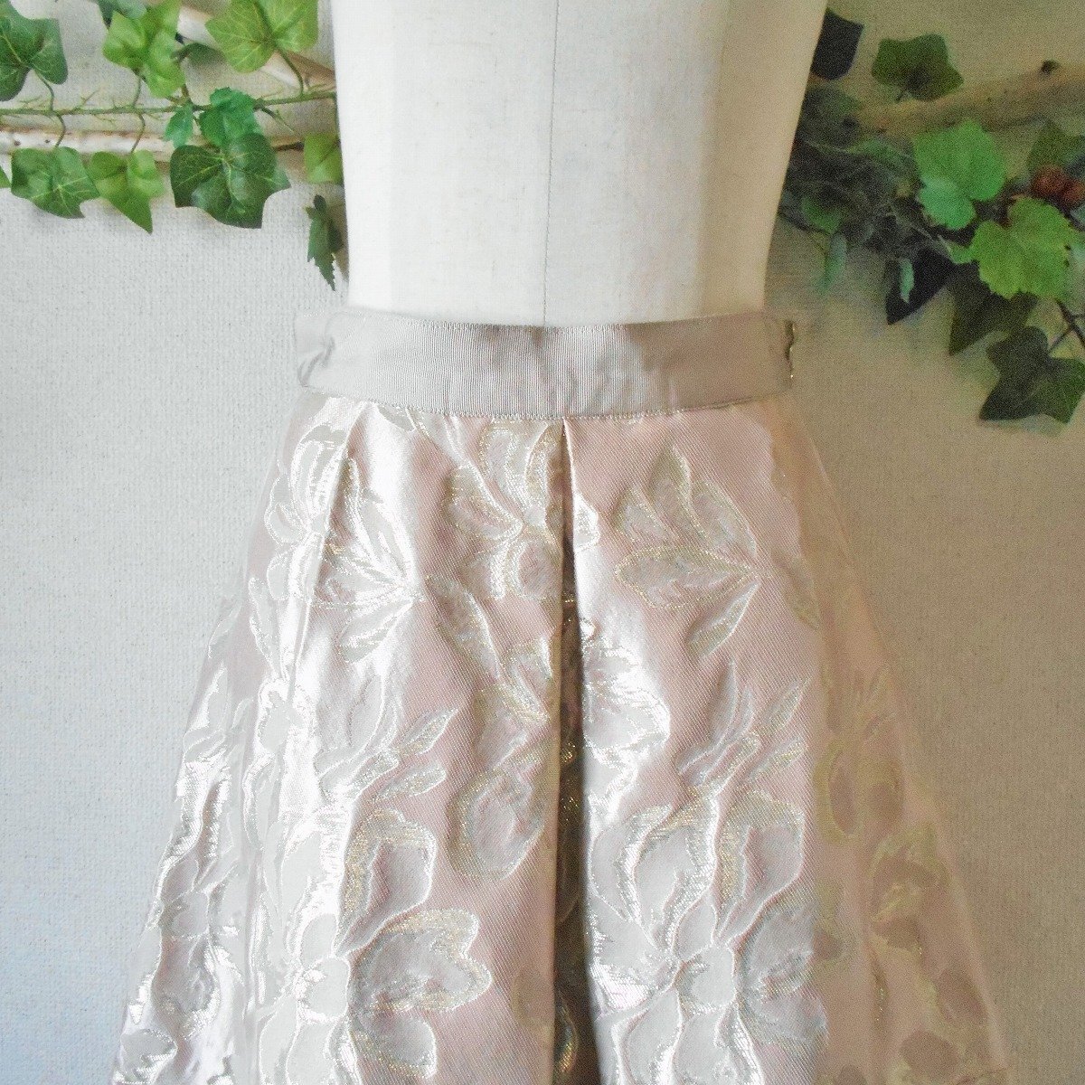 【ポイント】ジルスチュアートのスカートになります。お色はピンクベージュ系のベースカラーでゴールド使用の織柄入りです。
