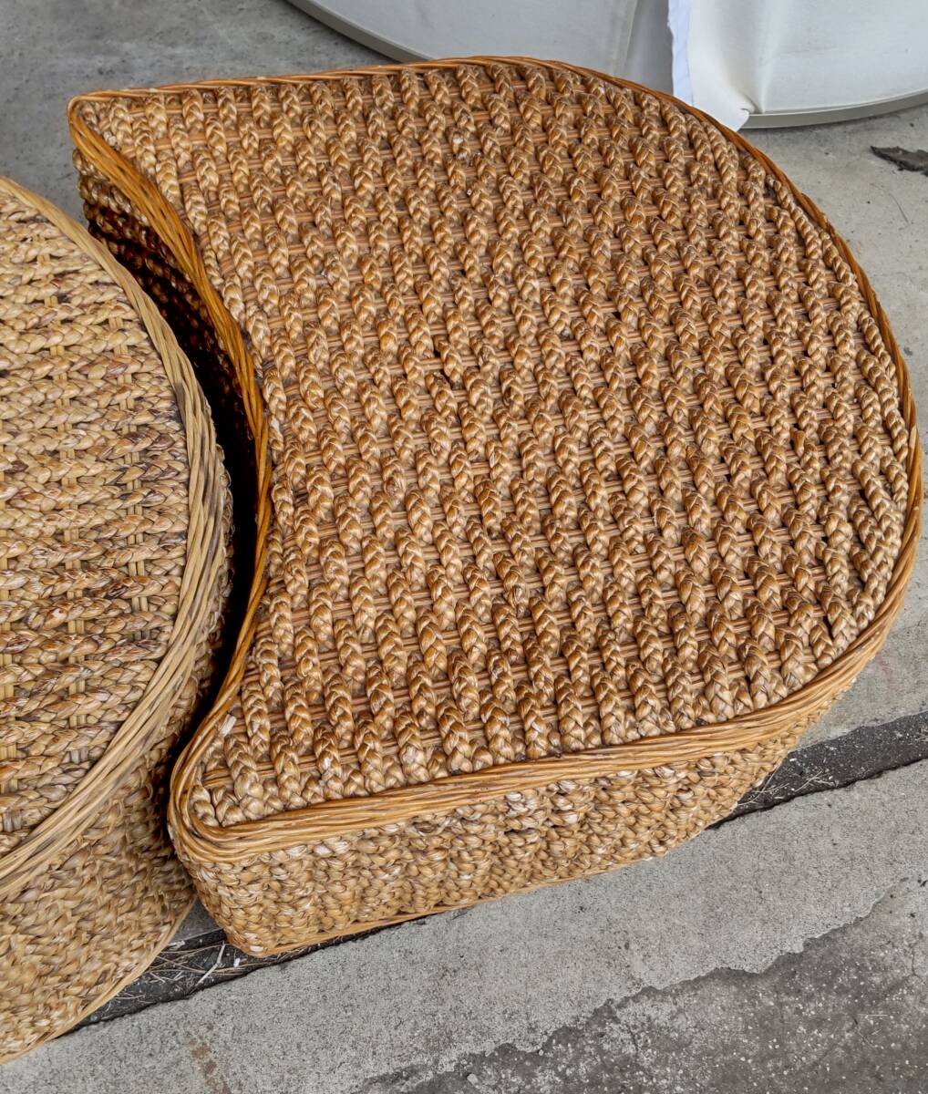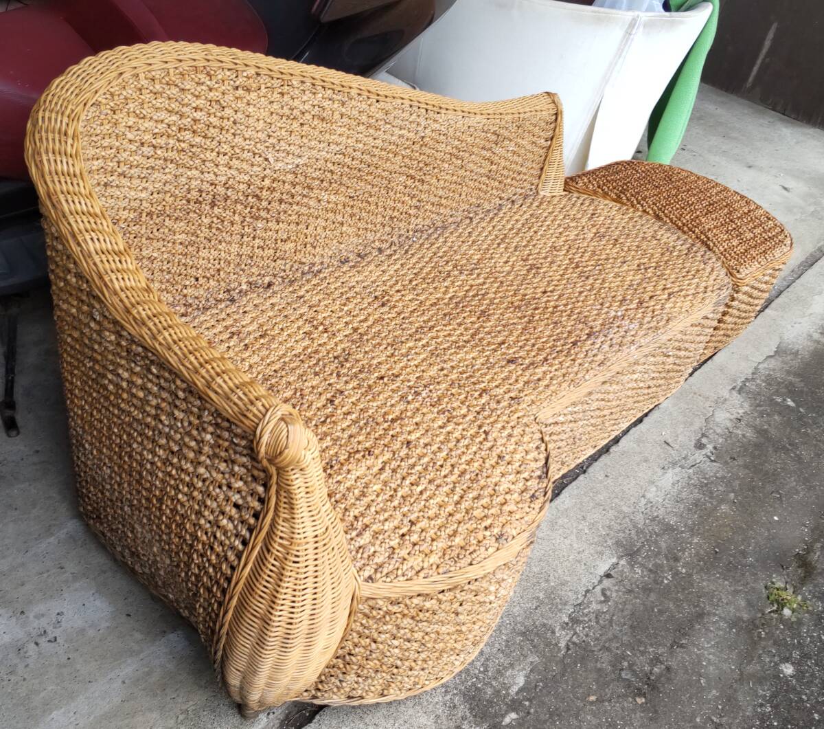 あまり見かけない形で、いいデザインだと思います。クッションも付属していますが、チープな感じなので、クッションなしで使う、別の小ぶりなクッションを並べる、又、お好みのスタイルのカバーの新調もお勧めです。家財宅急便対応致しますが、引取が良いかと。サイズは後ほどアップ致します。