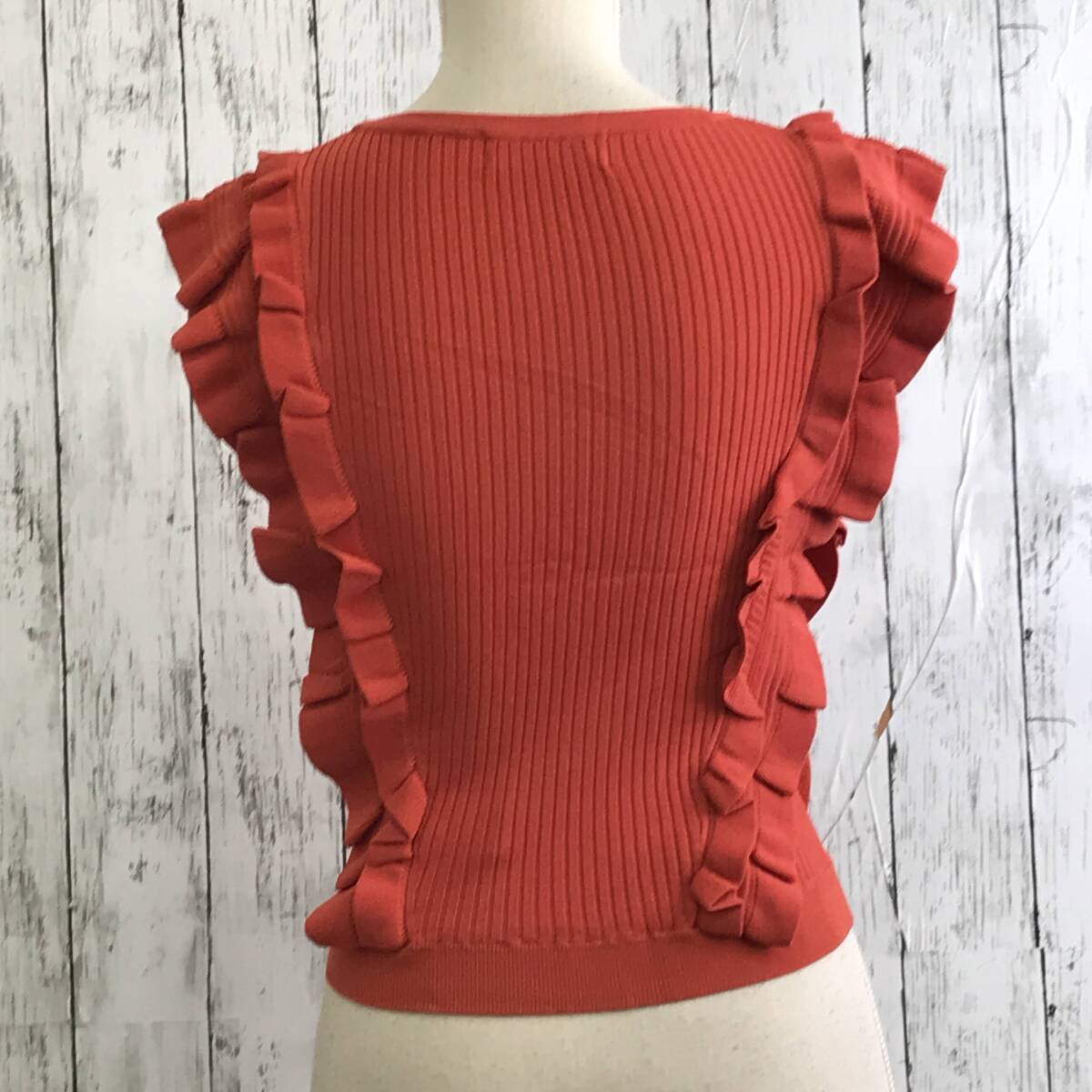 | 商品説明 | 商品名/フリルニットタンクトップ サイズ/F 着丈44cm 身幅31cm 裄丈19cm 素材/レーヨン54% ナイロン44% ポリウレタン2% 商品状態/未使用に近い |