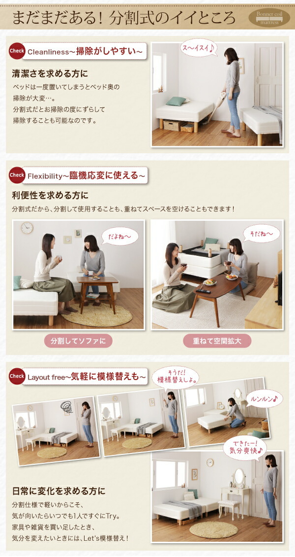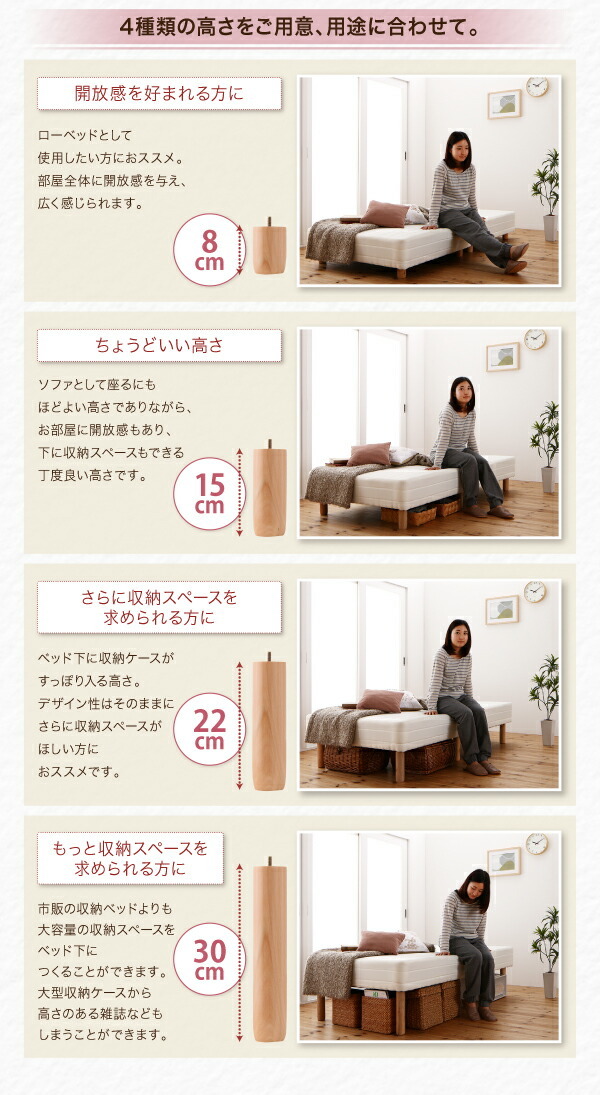 組立設置付き ショート丈分割式 脚付きマットレスベッド ボンネル お買い得ベッドパッド・シーツは別売り セミシングル ショート丈 脚8cm【マットレスカラー:アイボリー】です。