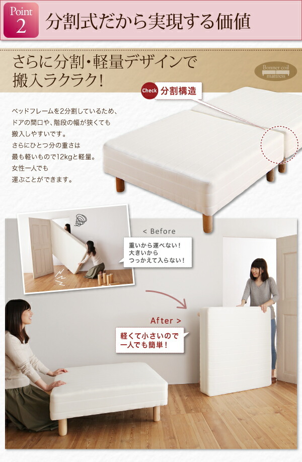 ショート丈分割式 脚付きマットレスベッド ボンネル お買い得ベッドパッド・シーツは別売り セミシングル ショート丈 脚8cm 組立設置付