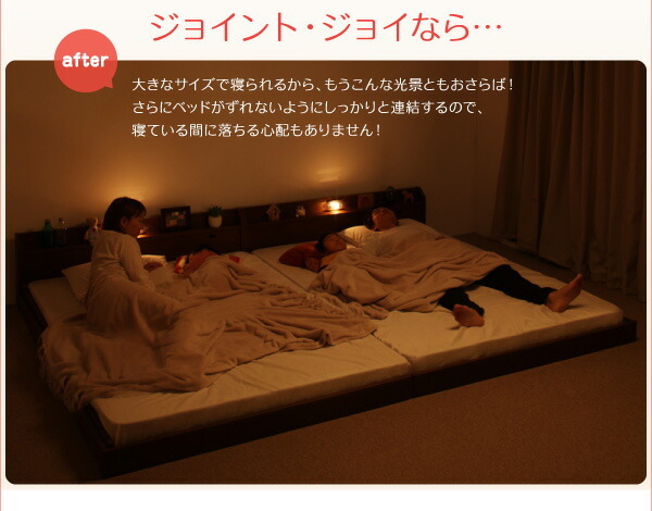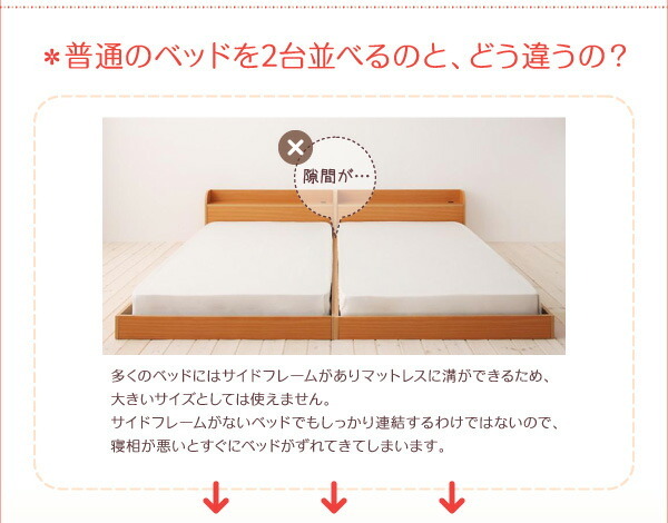 親子で寝られる棚・照明付き連結ベッド ボンネルコイルマットレス付き セミシングル