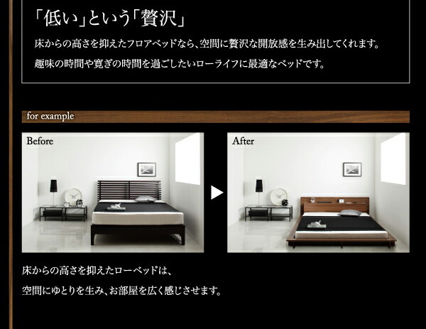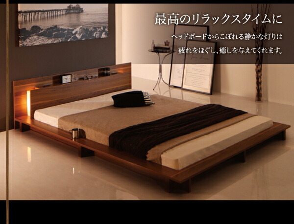 モダンライト・コンセント付きローベッド スタンダードポケットコイルマットレス付き ダブル 組立設置付