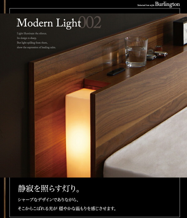 組立設置付き モダンライト・コンセント付きローベッド Burlington バーリントン スタンダードポケットコイルマットレス付き ダブル【フレームカラー:ウォルナットブラウン】【マットレスカラー:ホワイト】です。