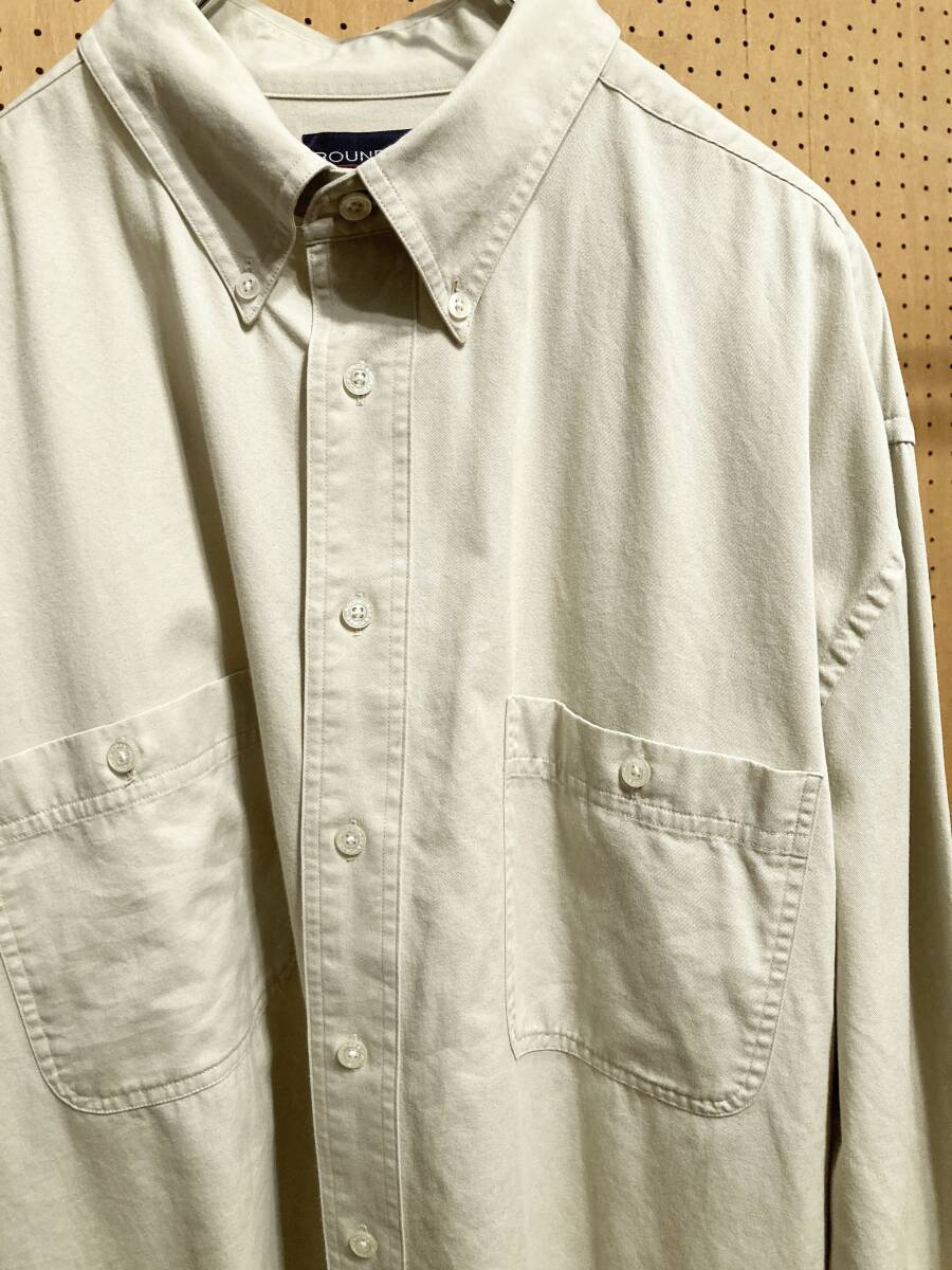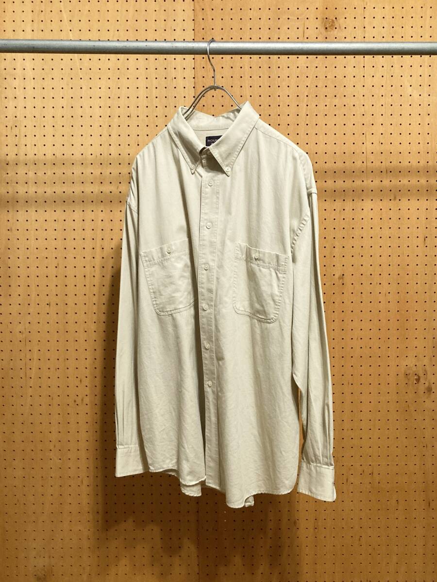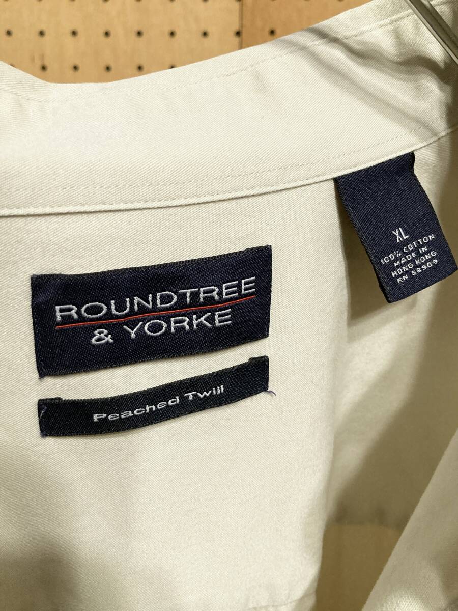 古着 90年代 90s ROUNDTREE&YORKE 長袖 無地 ワーク シャツ コットン オフ ホワイト 白 メンズ XXL 2XL 大きいサイズ ビッグサイズ 中古