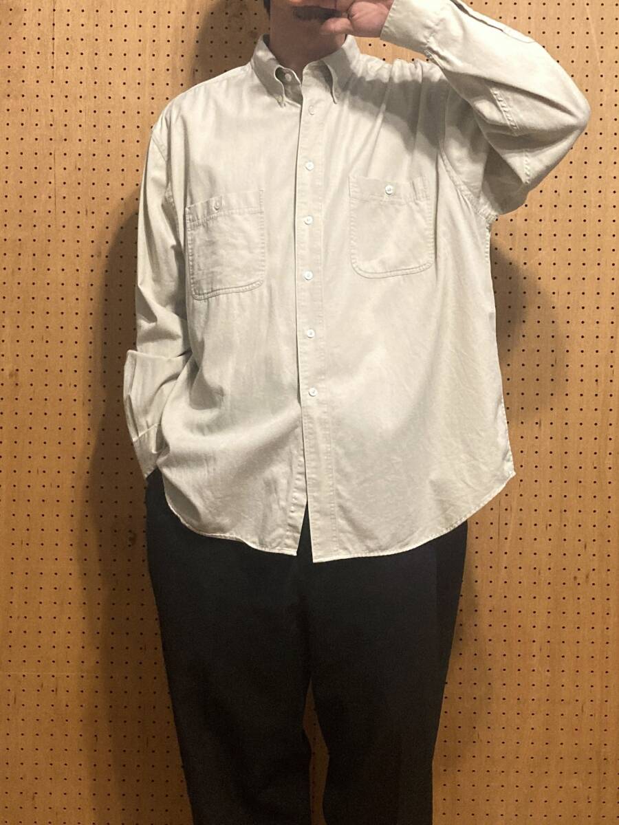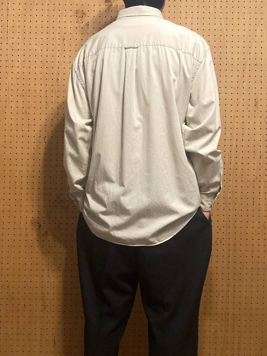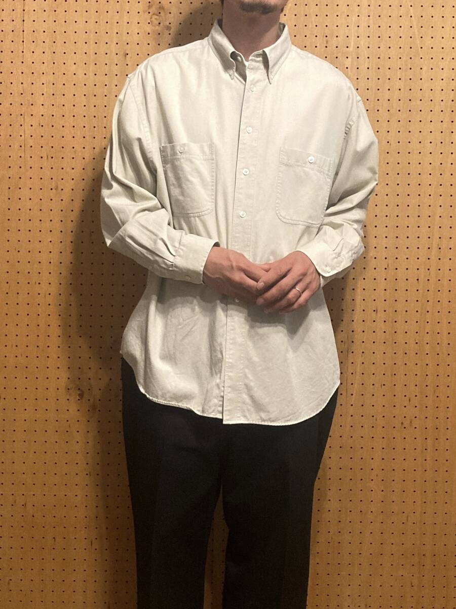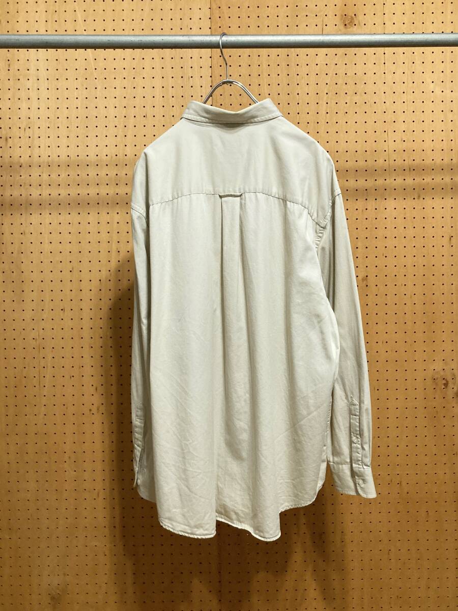 古着 90年代 90s ROUNDTREE&YORKE 長袖 無地 ワーク シャツ コットン オフ ホワイト 白 メンズ XXL 2XL 大きいサイズ ビッグサイズ 中古