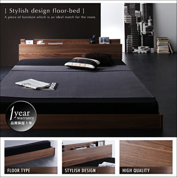 棚・コンセント付きフロアベッド スタンダードポケットコイルマットレス付き ダブル 組立設置付